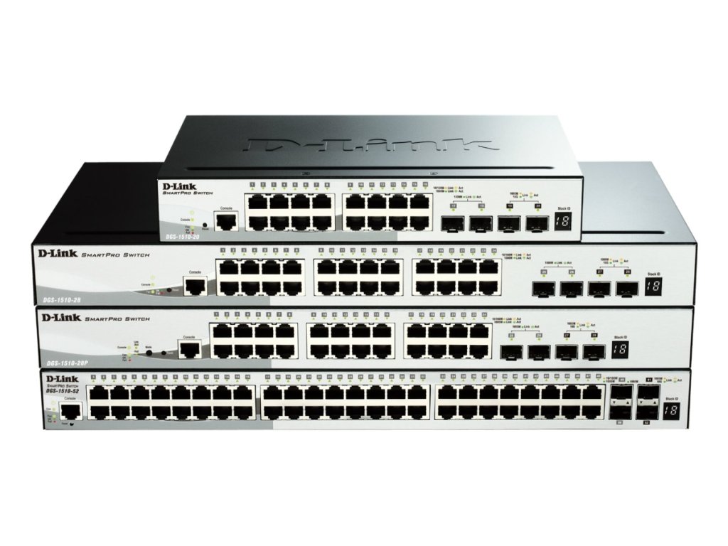 Řada DGS-1510 je D-Linková poslední generace SmartPro switchů s 10G portovou konektivitou, což je dělá ideální pro nasazení v SME/SMB jádrových prostředích. Řada DGS-1510 nabízí spolehlivou, škálovatelnou a modulární interkonektivitu mezi jádrovými switchi a krajními switchi s bohatými schopnostmi a zjednodušenou flexibilitou. Je dostupná v 16, 24 nebo 48 10/100/1000 Mbps portových modelech, tyto switche také obsahují 2 Gigabitové SFP porty a 2 10G SFP+ porty.