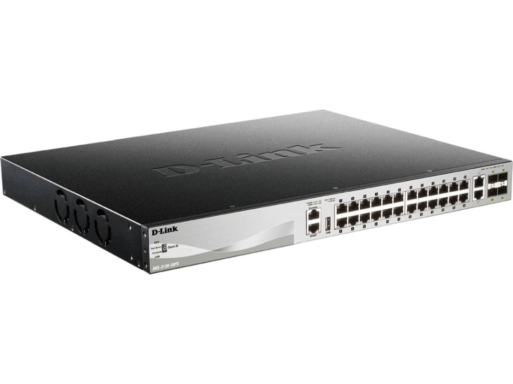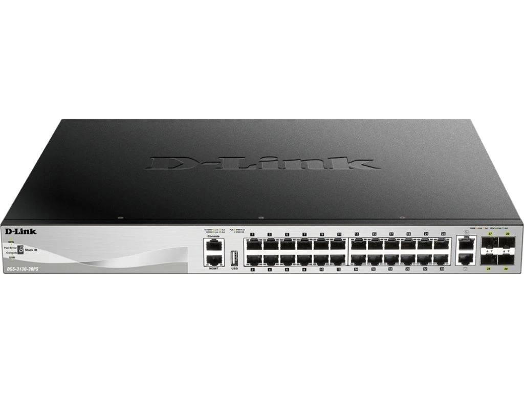 D-Link DGS-3130-30PS L3 Stackable Managed PoE switch, 24x GbE PoE+, 2x 10G RJ-45, 4x 10G SFP+, PoE 370W