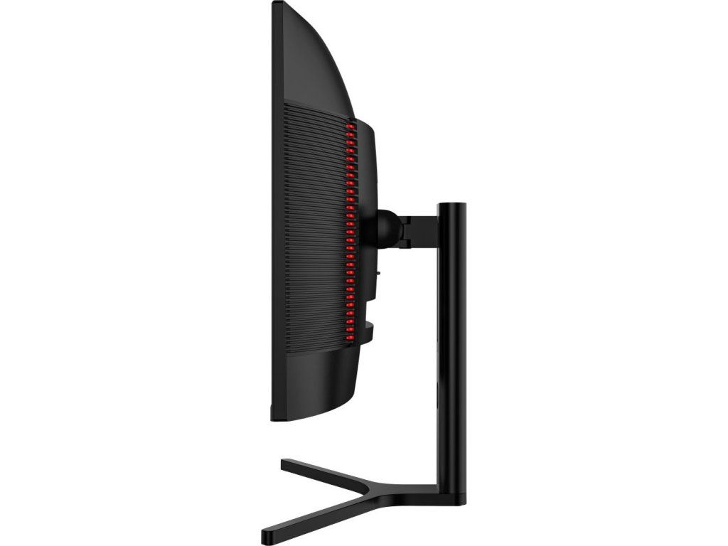 Stojan monitoru umožňuje výškové nastavení v rozsahu 100 mm, náklon -5° až +15° a otáčení -35° až +35°, což zajišťuje optimální nastavení pro každého uživatele. Elegantní černý design s barevným podsvícením zadního krytu dodává hernímu setupu stylový vzhled.