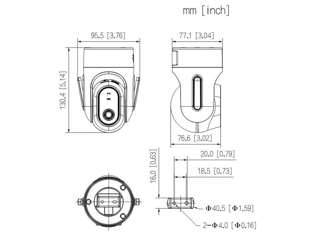 IR přísvit do 15 m, objektiv f = 4 mm, úhel záběru 85,9° horizontálně, ICR, DWDR, 1× LAN 10/100 Mbps, slot pro microSD kartu (max 512 GB), napájení DC 5 V.