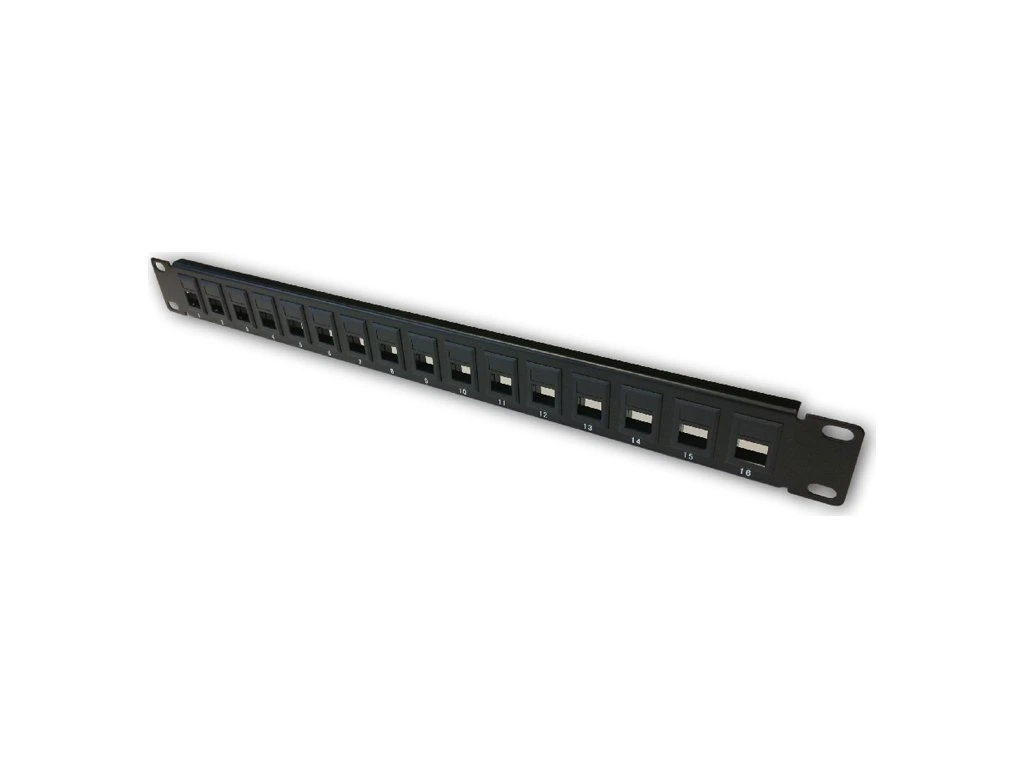 - 19" Neosazený patch panel určený pro montáž do 19" datových rozvaděčů.