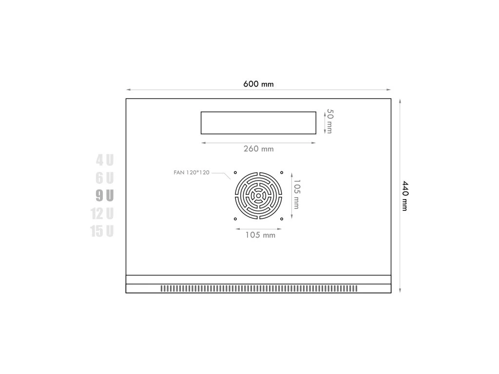 | Výška 19" rozvaděče: | 9U |