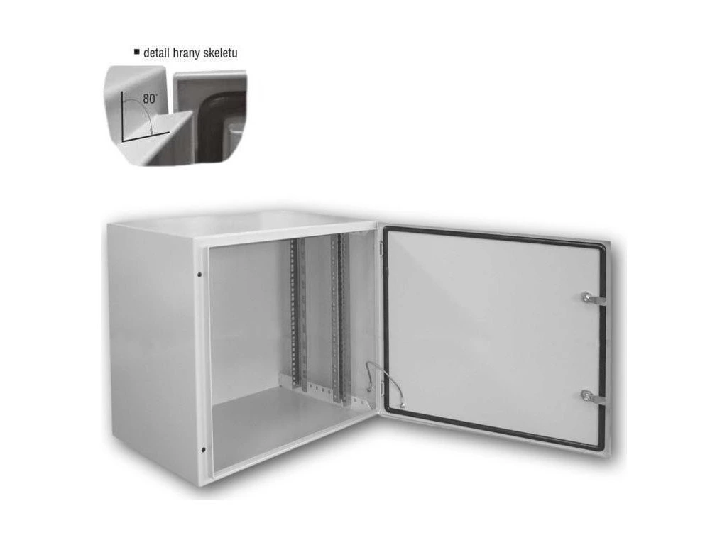 Univerzální svařovaný nástěnný rozvaděč pro prvky strukturovaných kabeláží menšího rozsahu, nebo pro instalaci prvků telekomunikačních rozvodů se širokým spektrem použití.