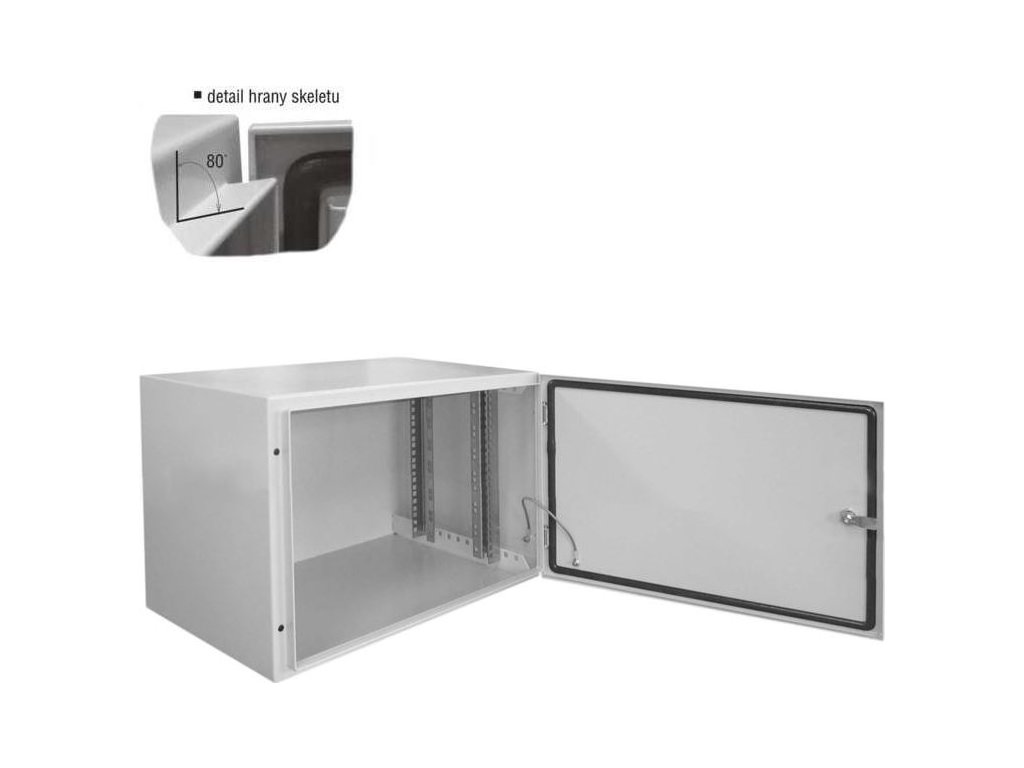 Univerzální svařovaný nástěnný rozvaděč pro prvky strukturovaných kabeláží menšího rozsahu, nebo pro instalaci prvků telekomunikačních rozvodů se širokým spektrem použití.