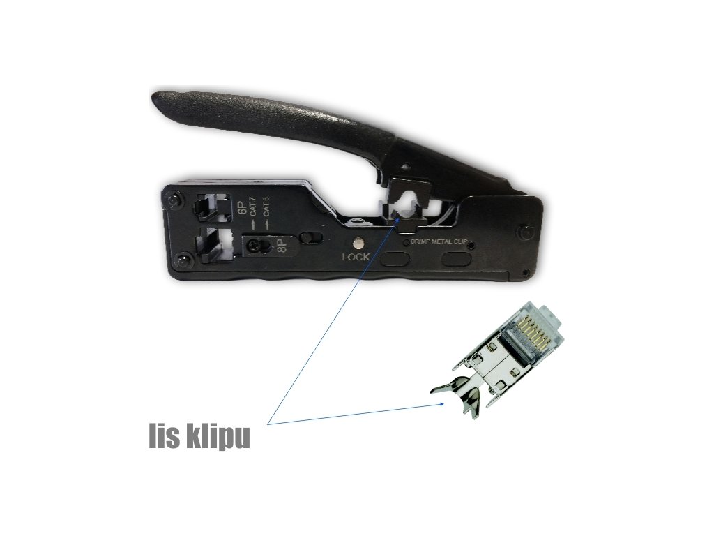 Konektorovací kleště vhodné pro konektorování RJ45, RJ12, RJ11 konektoru a následného zalisování klipu konektoru.
