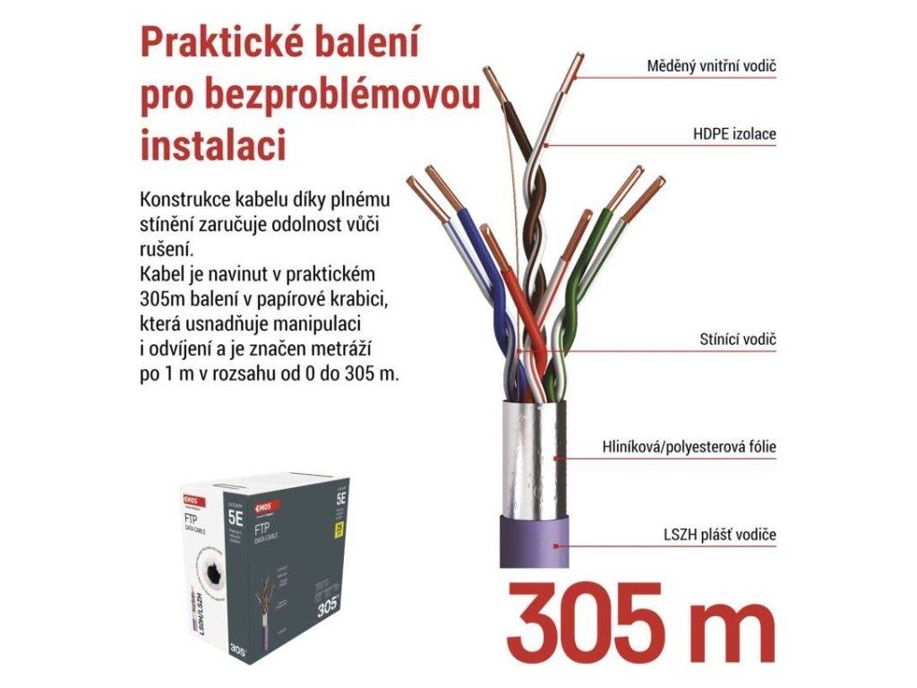 | Značení kabelu: | FTP Cat5E LSZH 1 – 305 m |