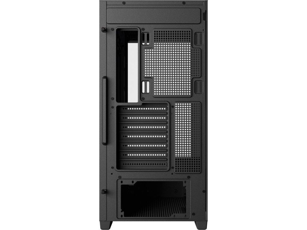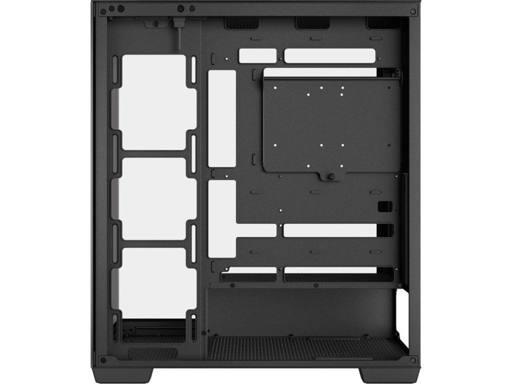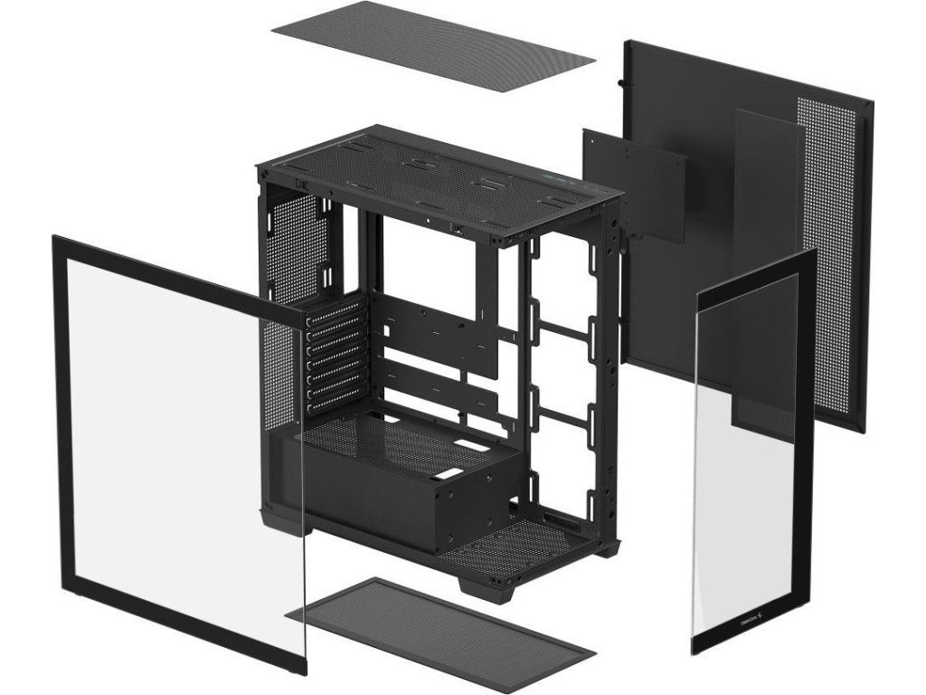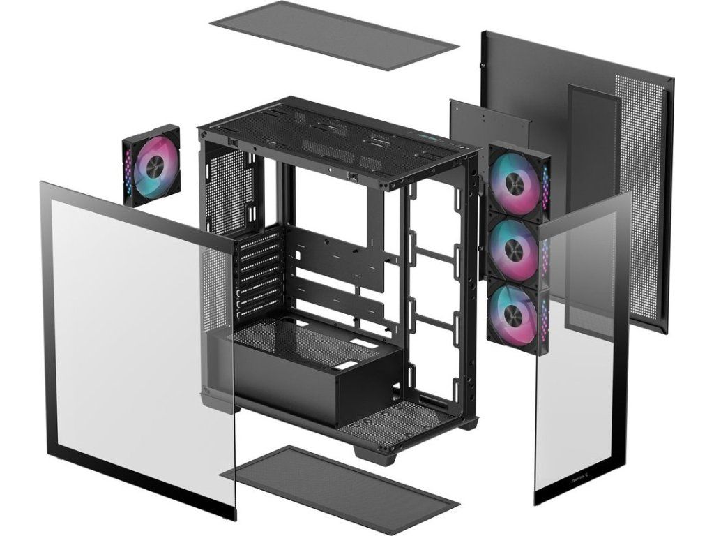 PC skříň DEEPCOOL CG580 4F v jednokomorovém provedení, které nejenom pojme výkonné komponenty, ale také je dá patřičně na odiv. Díky prosklené bočnici a přednímu panelu poskytuje panoramatický a nepřerušovaný pohled na vnitřní uspořádání, a tím i stylový vzhled celé skříně. Konstrukce nabízí praktickou přihrádku na základní desku, což přispívá k čistému a přehlednému uspořádání.