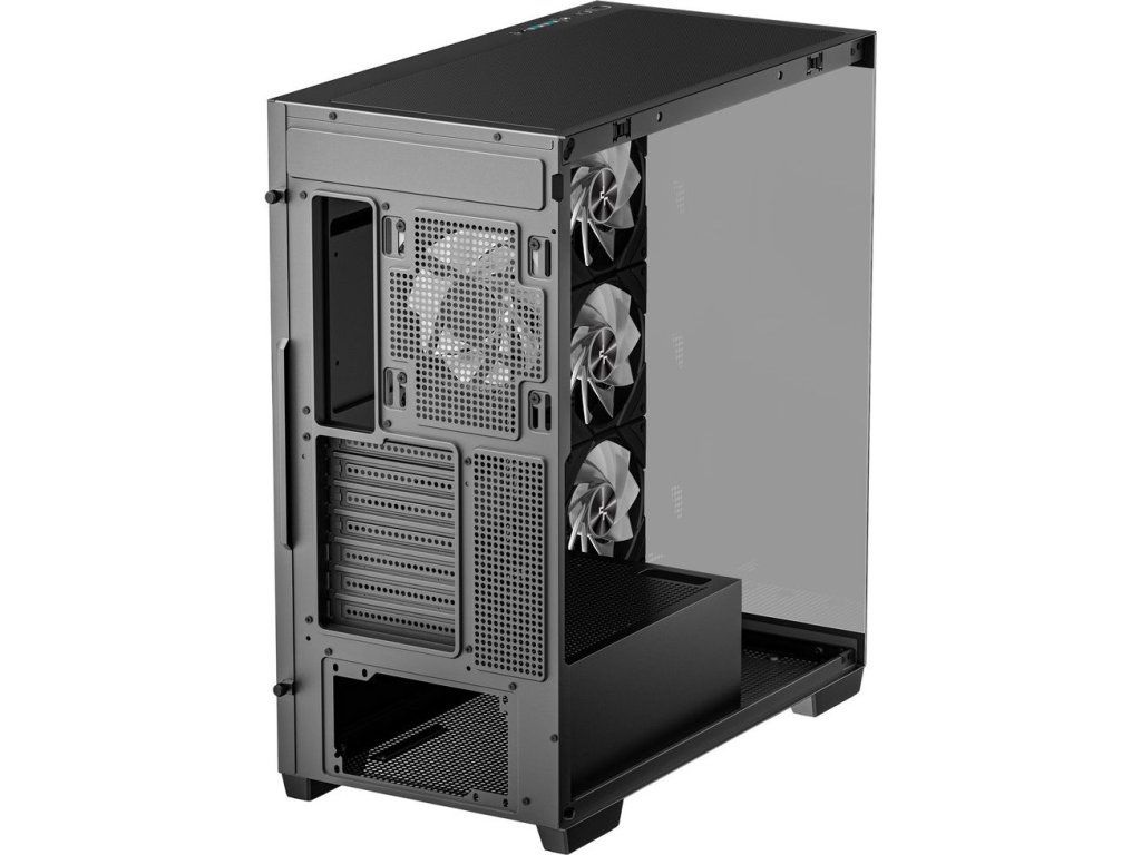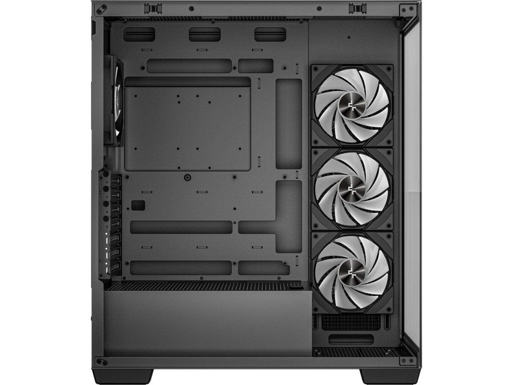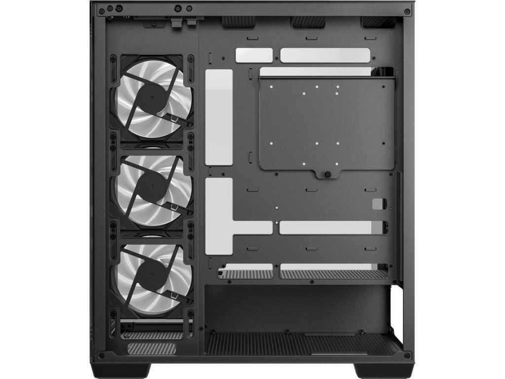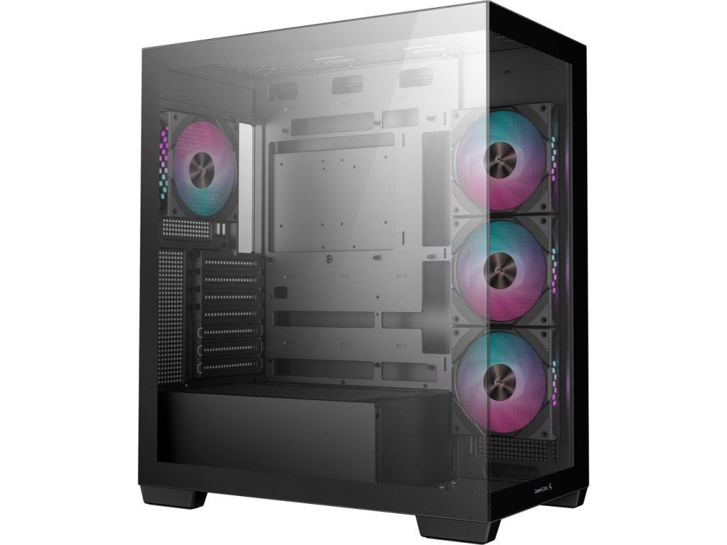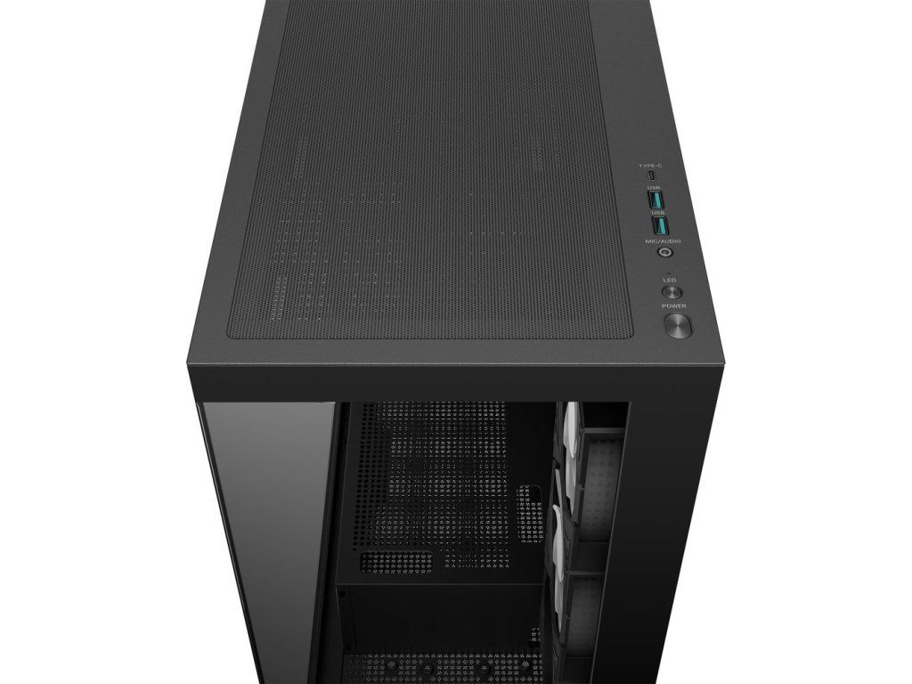 PC skříň DEEPCOOL CG580 4F v jednokomorovém provedení, které nejenom pojme výkonné komponenty, ale také je dá patřičně na odiv. Díky prosklené bočnici a přednímu panelu poskytuje panoramatický a nepřerušovaný pohled na vnitřní uspořádání, a tím i stylový vzhled celé skříně. Konstrukce nabízí praktickou přihrádku na základní desku, což přispívá k čistému a přehlednému uspořádání.
