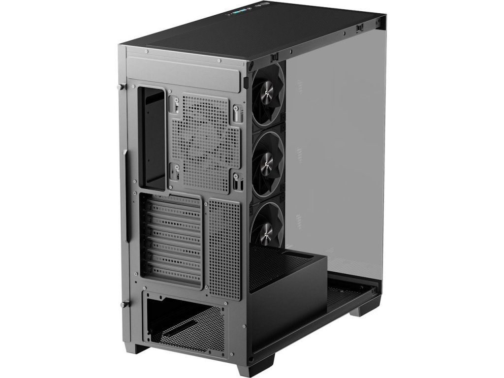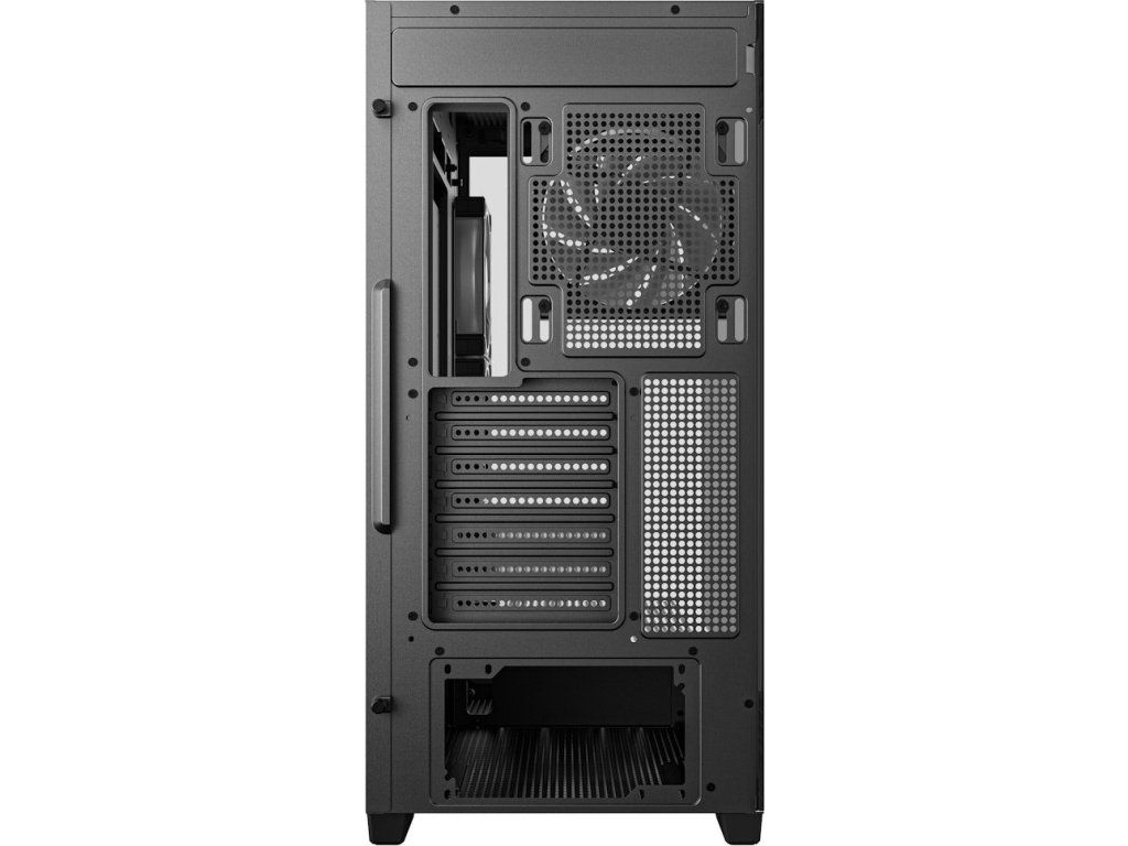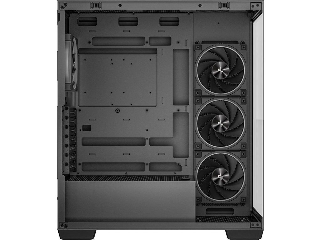 Předinstalované ventilátory: 3× 120 mm PWM ARGB s reverzním prouděním (bok), 1× 120 mm PWM ARGB (vzadu)
