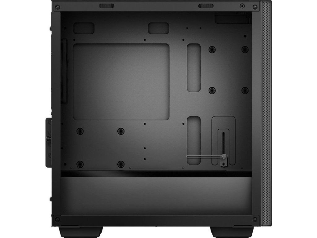 DEEPCOOL MACUBE 110Skříň formátu Mini tower s průhlednou bočnicí nabízí dvě 2,5" pozice pro SSD disky a dvě 3,5" pozice pro pevné disky. Na horním panelu se nachází dva USB 3.0 porty a kombinovaný vstup/výstup zvuku. Skříň je vybavena jedním ventilátorem o velikosti 120 mm na zadní straně. Důmyslné řešení umožňuje pohodlné umístění až 360 mm dlouhého výměníku vodního chlazení na přední a vrchní straně. Ve skříni je dostatek prostoru pro chladič CPU do výšky až 165 mm a grafickou kartu o délce 320 mm. Skříň je dodávána bez zdroje. Součástí je také sada prachových filtrů.