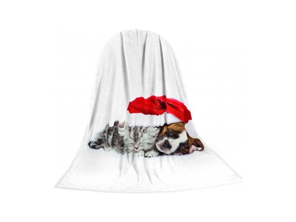 Deka TEXSTAR mikrovlákno 280g 150 x 200 cm, kotě a štěně vánoční