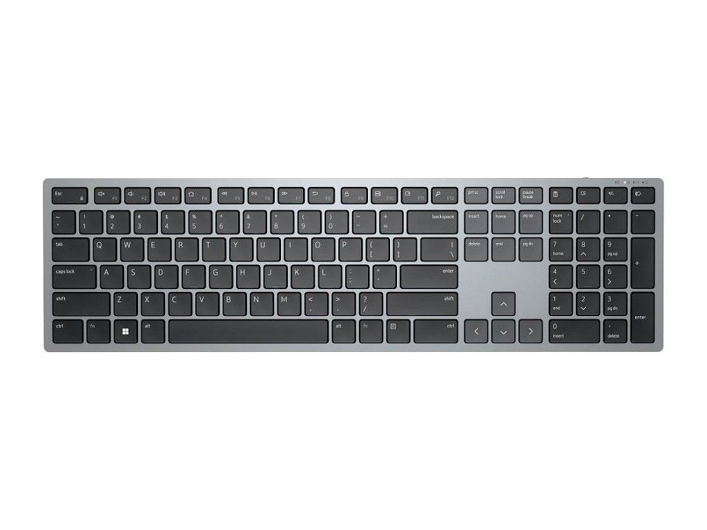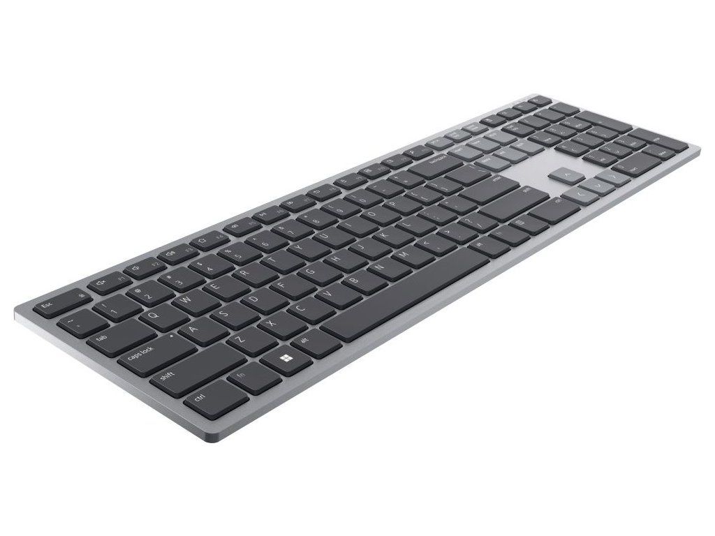 Stylová plnohodnotná bezdrátová klávesnice Dell podporuje připojení až ke třem zařízením v jeden moment. Napájení zajišťují dvě AAA baterie, které zaručí výdrž až 36 měsíců. Připojení je realizováno bezdrátově skrze Bluetooth či miniaturní USB přijímač a technologii 2,4 GHz.