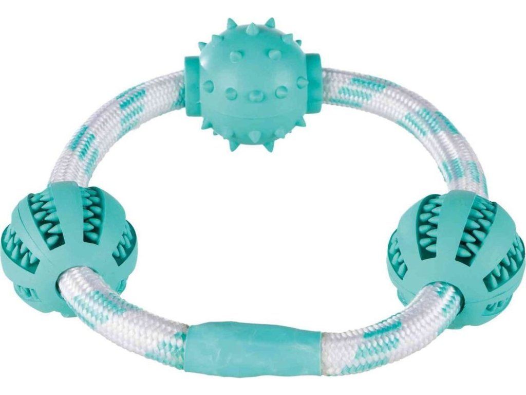 DentaFun bavlněný kruh se 3 míčky, o 20 cm/o 5 cm, přírodní guma
