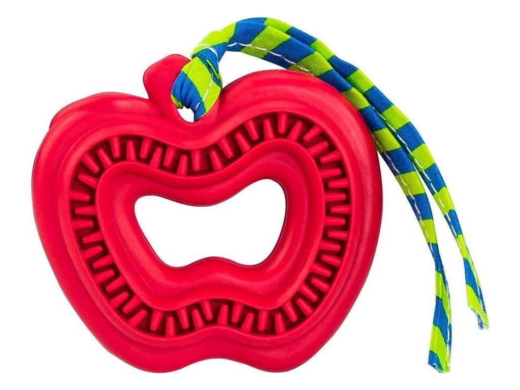 Dentální hračka jablko přírodní guma pro štěňata s látkovým střapcem 8 cm, HipHop Dog