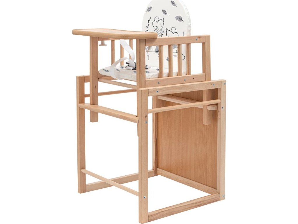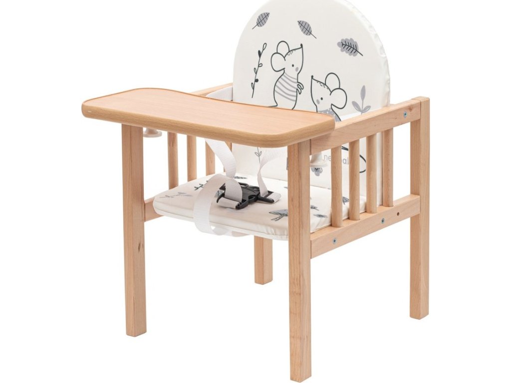 Multifunkční jídelní židlička české značky NEW BABY je navržena s maximálním důrazem na bezpečnost a kvalitu. Vyrobena z pevného bukového dřeva, poskytuje vysokou stabilitu a dlouhou životnost. Všechny použité materiály a nátěry splňují přísné bezpečnostní normy pro dětský nábytek a jsou zcela nezávadné.