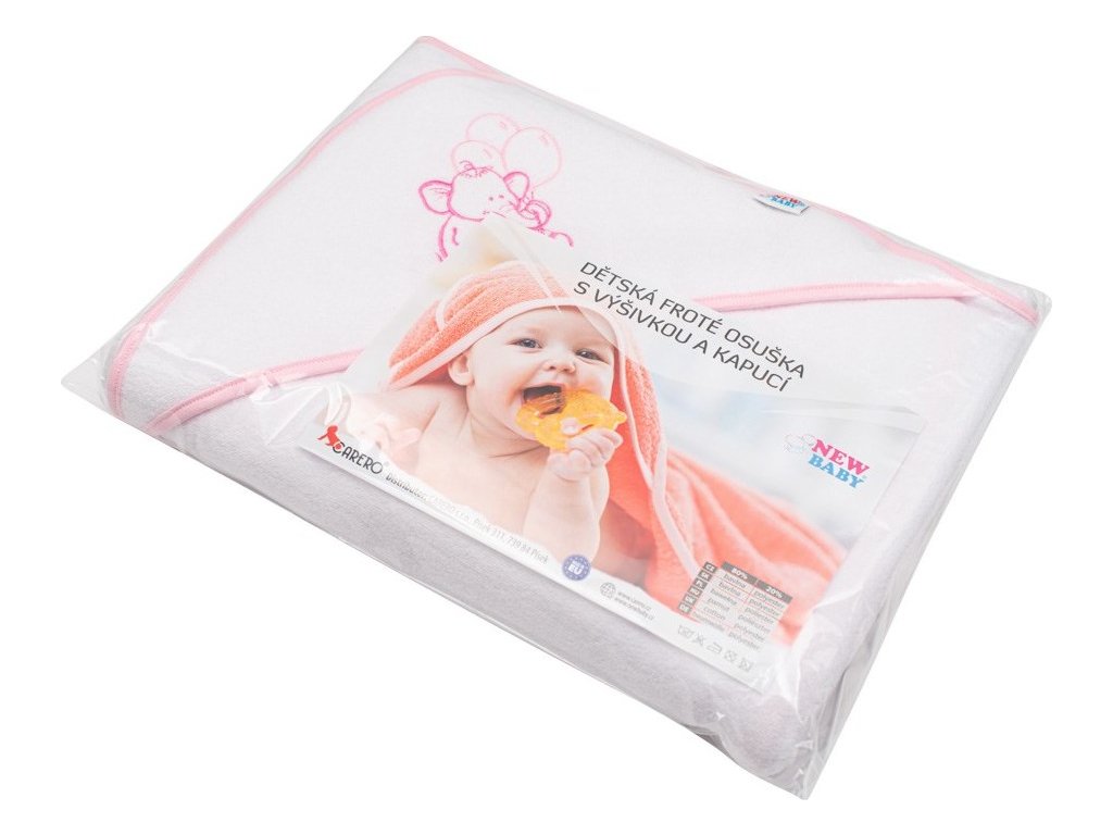 Krásná dětská froté osuška české značky New Baby je vyrobena z měkkého, kvalitního a velmi savého materiálu a proto je ideální pro miminka i starší děti. Osuška krásně zahřeje po koupeli a praktická kapucka chrání hlavičku děťátka před nepříjemným chladem. Osuška dokonale absorbuje vlhkost, přičemž velmi rychle schne. Zdobí ji veselý obrázek zvířátka. Kvalitní materiál, ze kterého je osuška vyrobena nepouští barvu a nevyvolává alergické reakce.