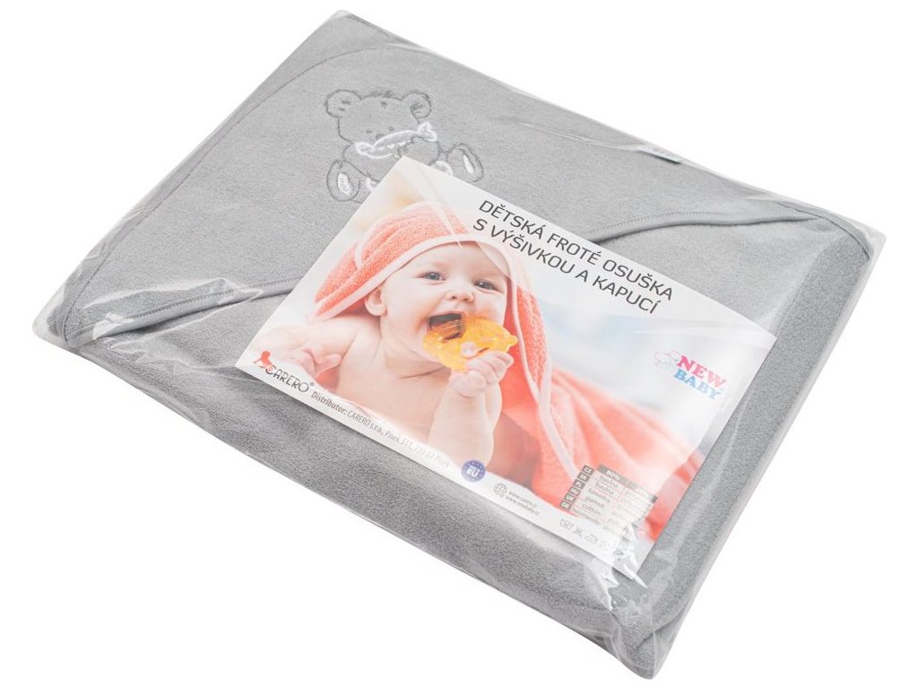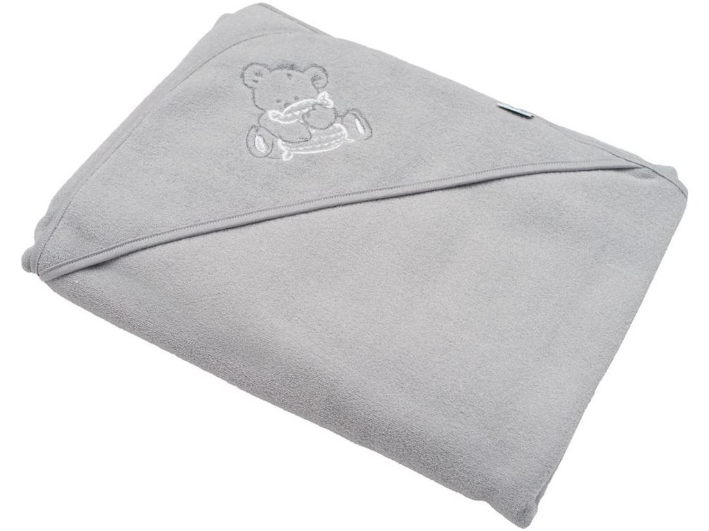 Dětská froté osuška s výšivkou a kapucí New Baby 100x100 šedá medvěd
