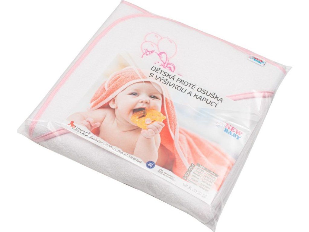 Krásná dětská froté osuška české značky New Baby je vyrobena z měkkého, kvalitního a velmi savého materiálu a proto je ideální pro miminka i starší děti. Osuška krásně zahřeje po koupeli a praktická kapucka chrání hlavičku děťátka před nepříjemným chladem. Osuška dokonale absorbuje vlhkost, přičemž velmi rychle schne. Zdobí ji veselý obrázek zvířátka. Kvalitní materiál, ze kterého je osuška vyrobena nepouští barvu a nevyvolává alergické reakce.