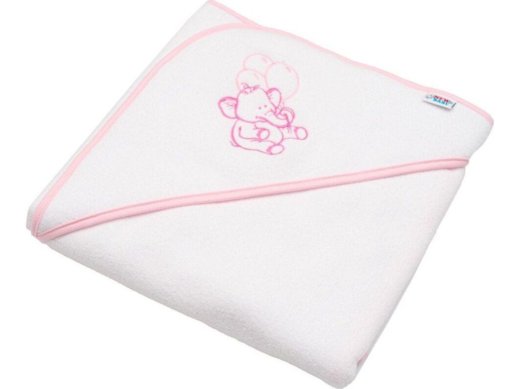 Dětská froté osuška s výšivkou a kapucí New Baby 80x80 bílá sloník