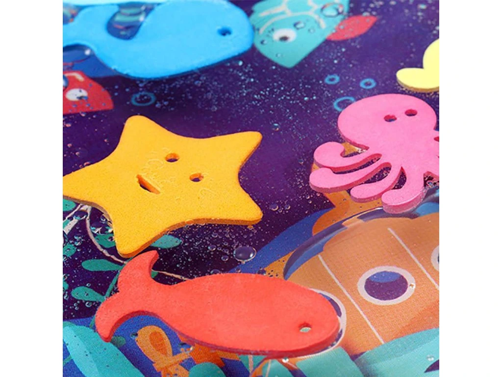 Ovlivňování smyslů je jednou ze základních funkcí hry. Proto jsme dbali na vzhled vodní podložky. Živé barvy a jasné tvary přitahují pozornost a stimulují zrak, zatímco plovoucí zvířátka rozvíjejí hmat.