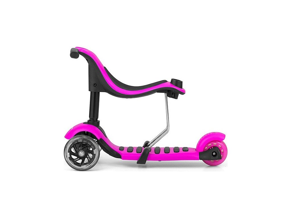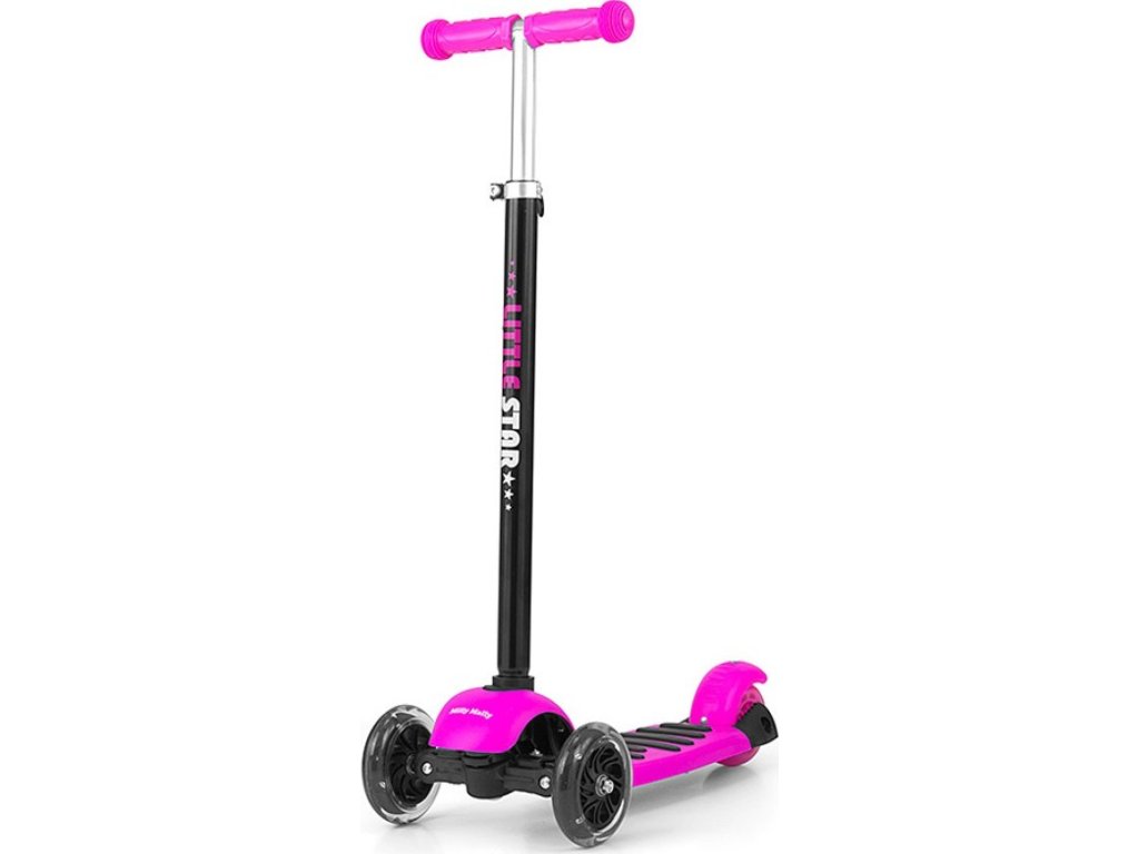 Super stylová dětská koloběžka Milly Mally Little Star. Není to jen koloběžka, je to také odrážedlo pro děti od druhých narozenin, které má sedadlo i vodíci tyč pro rodiče. Nosnost do 20 kg. Sedadlo i vodíci tyč lze jednoduše sundat a z odrážedla se rázem stane koloběžka s nosností do 50 kg. Je ideálním řešením pro aktivní děti, které jsou v neustálém pohybu. Little Star je vyrobena z kvalitních materiálů, ideální na procházky i pro skvělou zábavu. Kovová konstrukce zaručuje odolnost výrobku. Koloběžka má navíc brzdu a blatník na zadním kolečku. Řízení a kroucení pracuje na principu rovnováhy těla. Velkou výhodou koloběžky jsou 3 kola, které poskytnou stabilitu a bezpečnost. Děti potěší také, svítíci přední kola během jízdy. Little Star je 3v1, pohodlí a jednoduchost v moderní formě.
