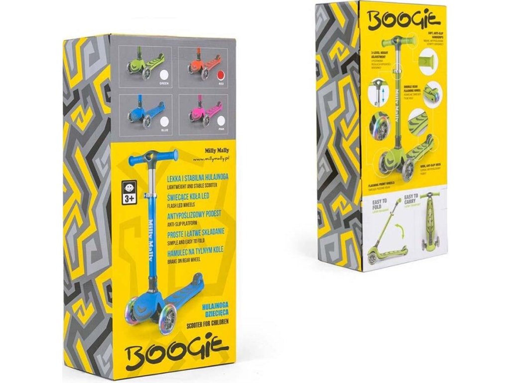 Abychom vyhověli potřebám našich malých závodníků, vytvořili jsme koloběžku BOOGIE SCOOTER. Je ideálním řešením pro aktivní děti, které mají rády pohyb. BOOGIE je vyroben z kvalitních materiálů, je ideální na procházky nebo řádění kolem domu. Lehká a přitom pevná hliníková konstrukce zaručí odolnost a dlouhou životnost výrobku. Řízení a zatáčení funguje na principu změny rovnováhy těla. Velkou výhodou koloběžky jsou 3 kola, která poskytnou stabilitu a bezpečnost. Zadní kolečko je navíc dvojité. Barevná a svítící přední kola zaručí dětem během jízdy ještě větší zábavu.