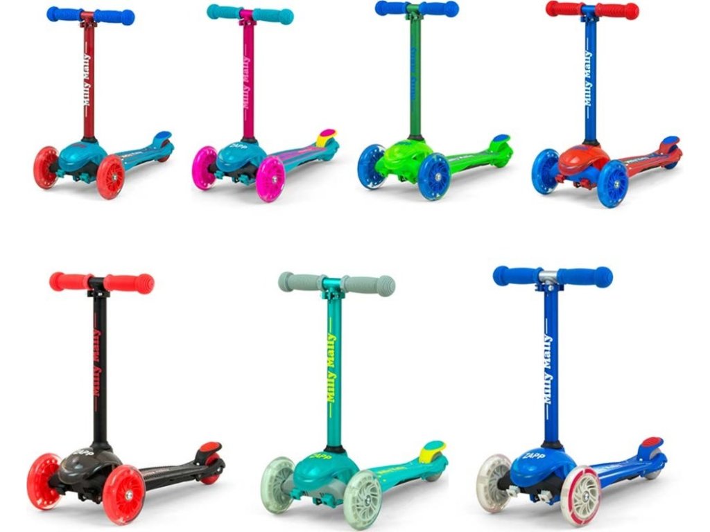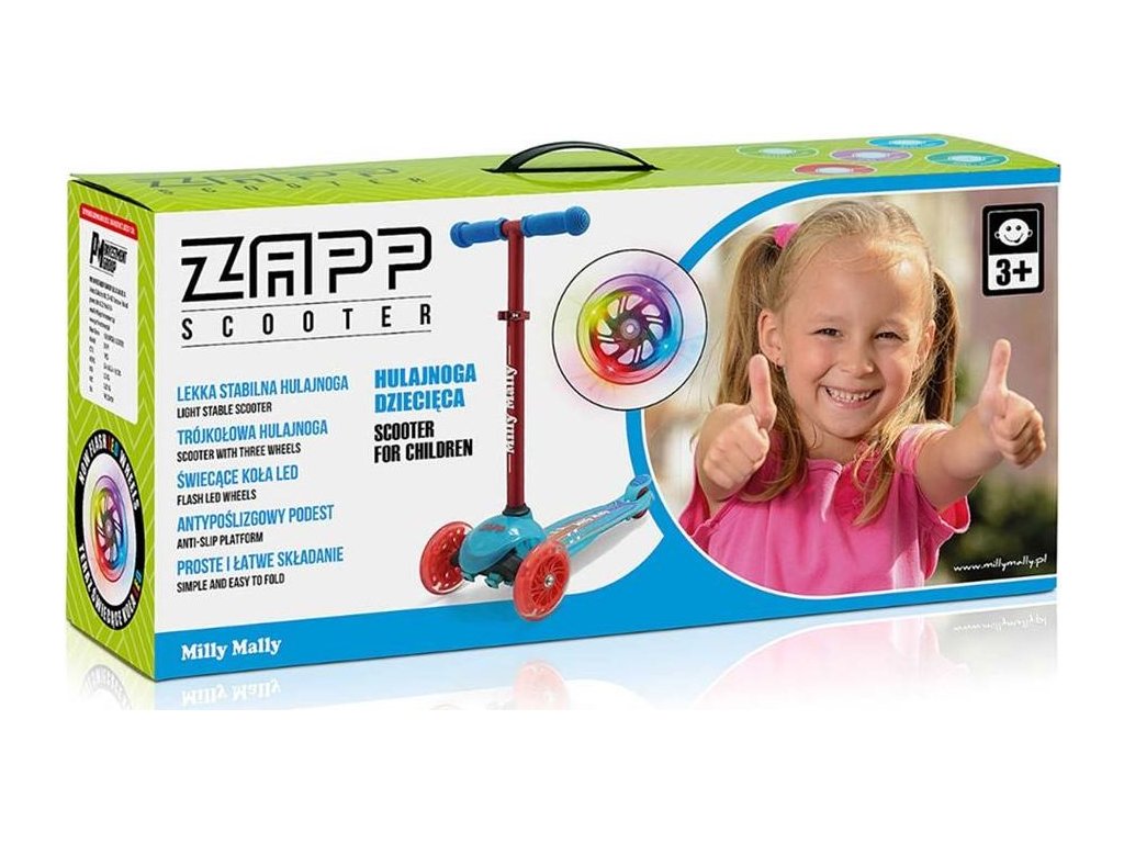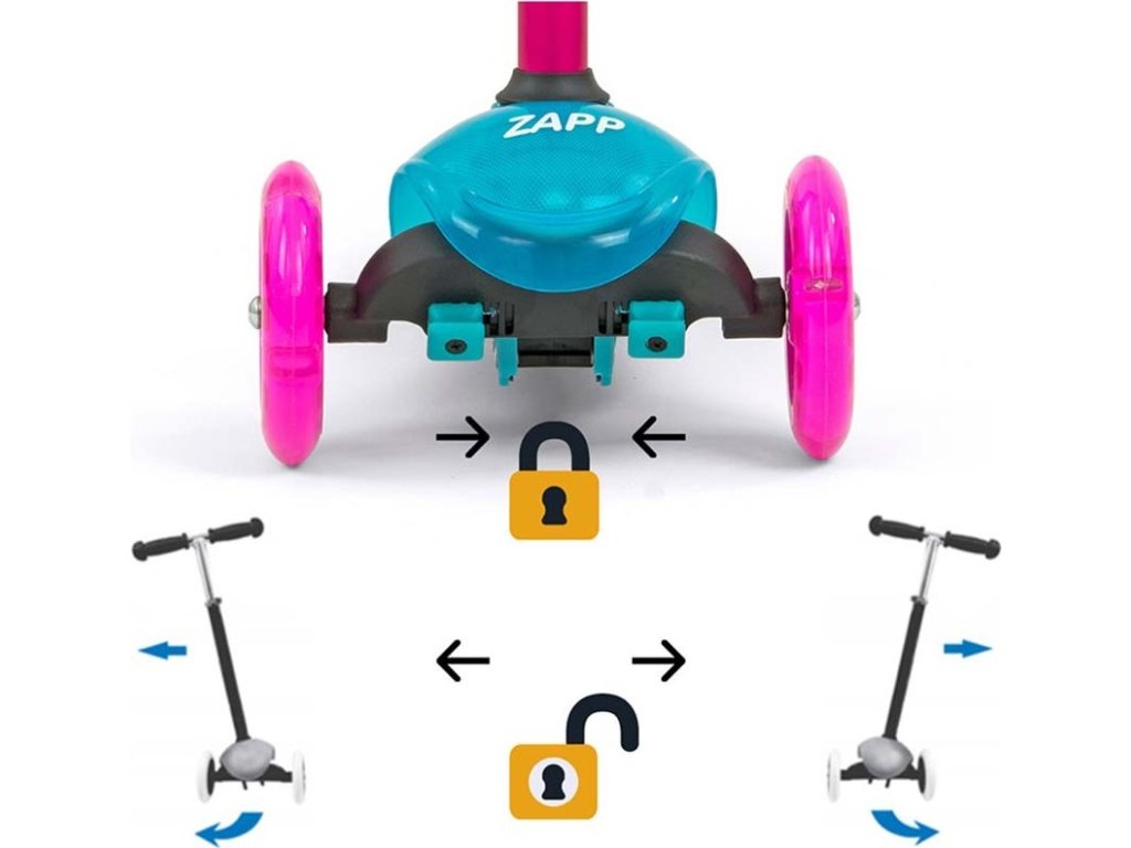 Abychom vyhověli potřebám našich malých závodníků, vytvořili jsme koloběžku ZAPP. Je ideálním řešením pro aktivní děti, které mají rády pohyb. Zapp je vyroben z kvalitních materiálů, je ideální na procházky nebo řádění kolem domu. Kovová konstrukce zaručuje odolnost výrobku. Koloběžka má navíc brzdu a blatník na zadním kolečku. Řízení a zatáčení pracuje na principu změny rovnováhy těla. Velkou výhodou koloběžky jsou 3 kola, které poskytnou stabilitu a bezpečnost. Děti potěší také, svítíci přední kola během jízdy.
