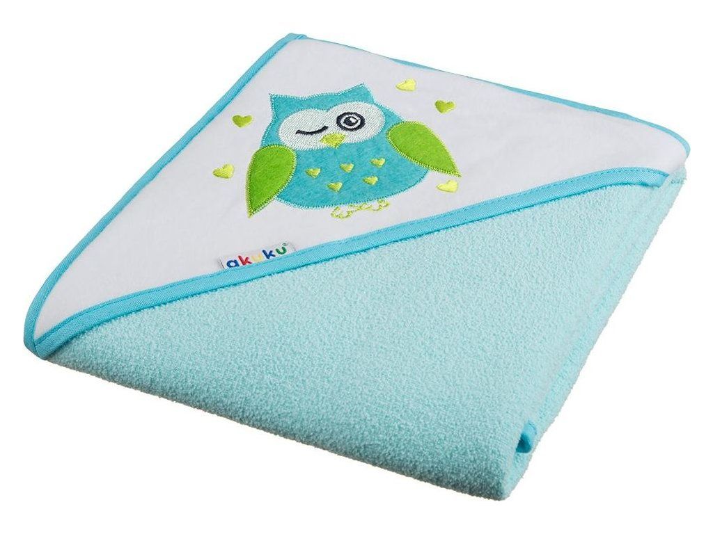 Dětská osuška 100x100 Akuku tyrkysová se sovou