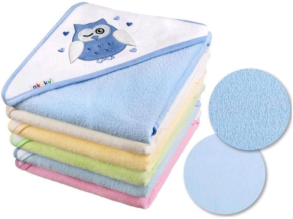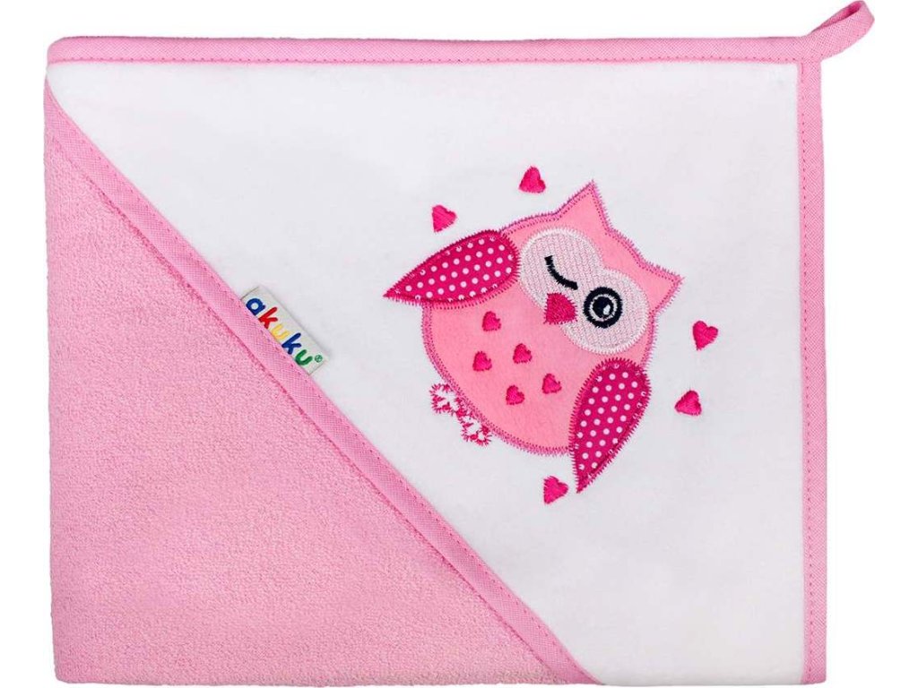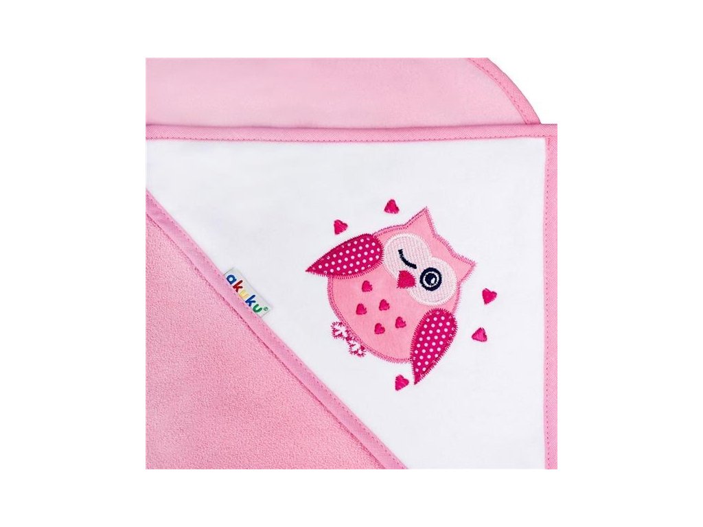 Dětská osuška Akuku s obrázkem a kapucí. Osuška je vyrobena z příjemného a měkkého materiálu. Vnitřní strana osušky je bavlněná, vnější fleecová. Rozměry: cca 80x80 cm. Složení: 100% bavlna.