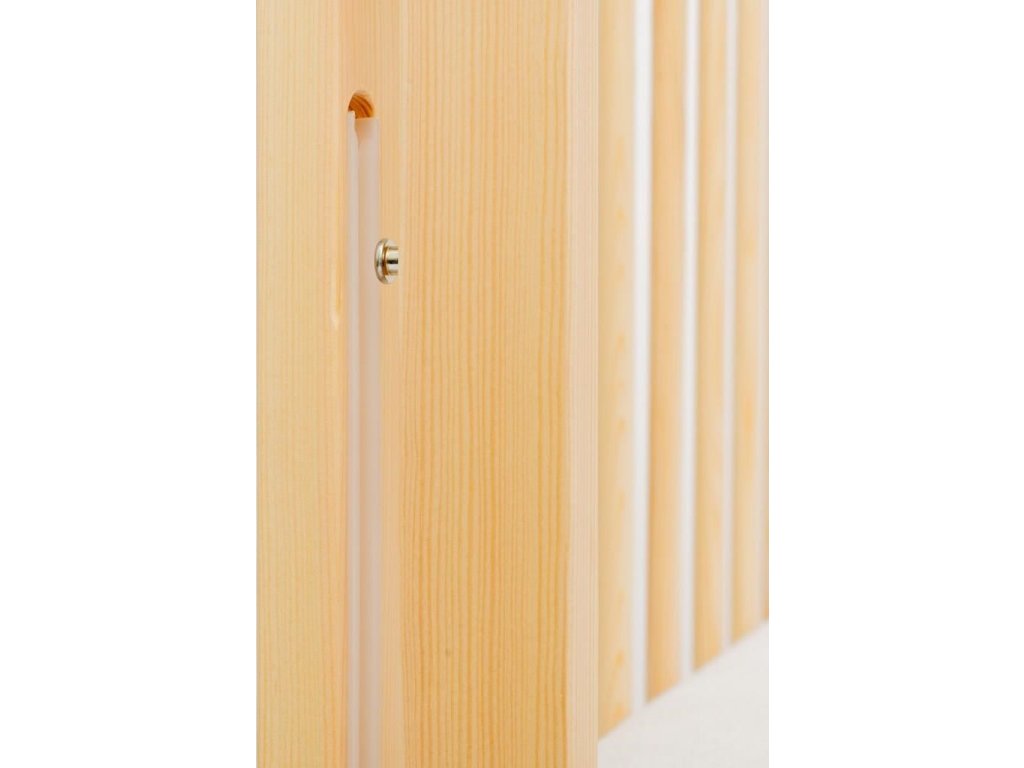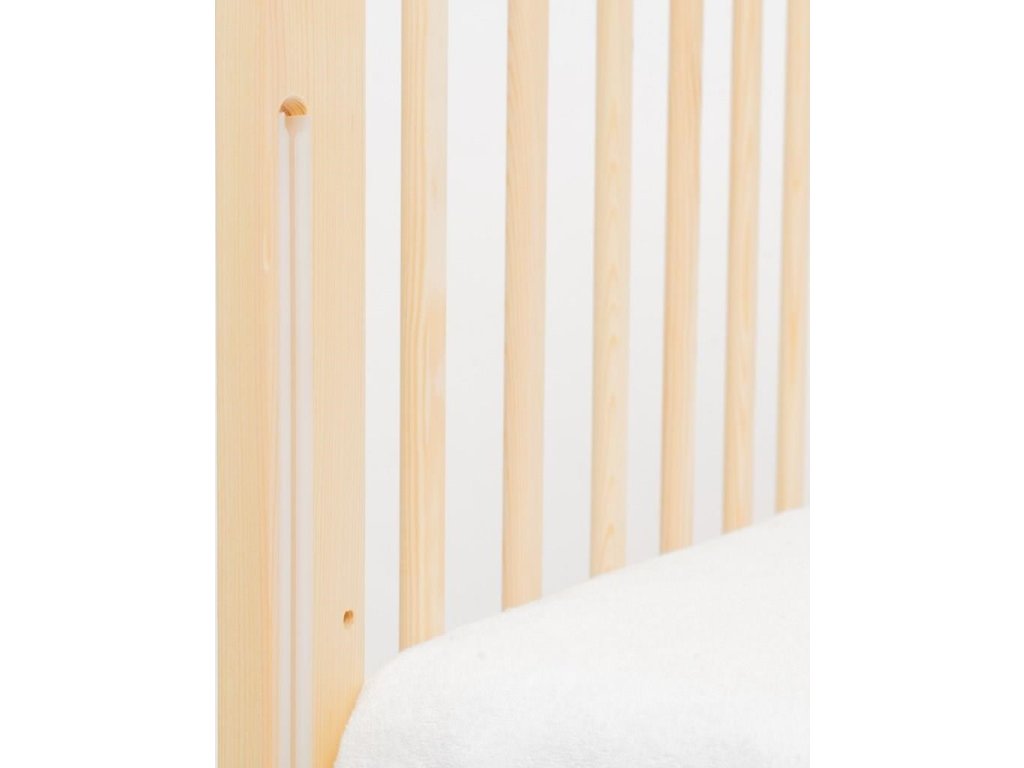 Je celá vyrobena z borovicového dřeva. Všechny materiály a suroviny použité při výrobě jsou schválené a certifikované, proto nábytek New Baby je zcela bezpečný a odolný.