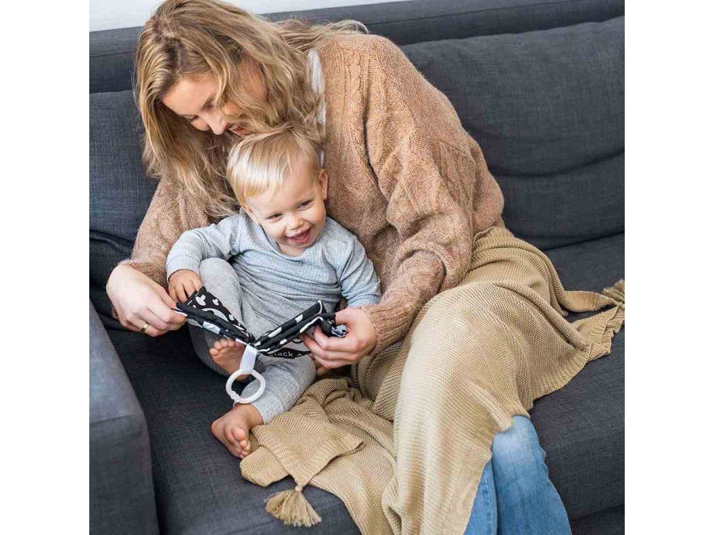 Knížka umožňuje získat nové dovednosti, od procvičování úchopu, přes stimulaci dásní pomocí kousátek s výstupky, až po naučení počítání a poznávání různých povrchů a tvarů. Má jasné, kontrastní barvy, které rozvíjejí zrak, představivost a schopnost soustředit se.