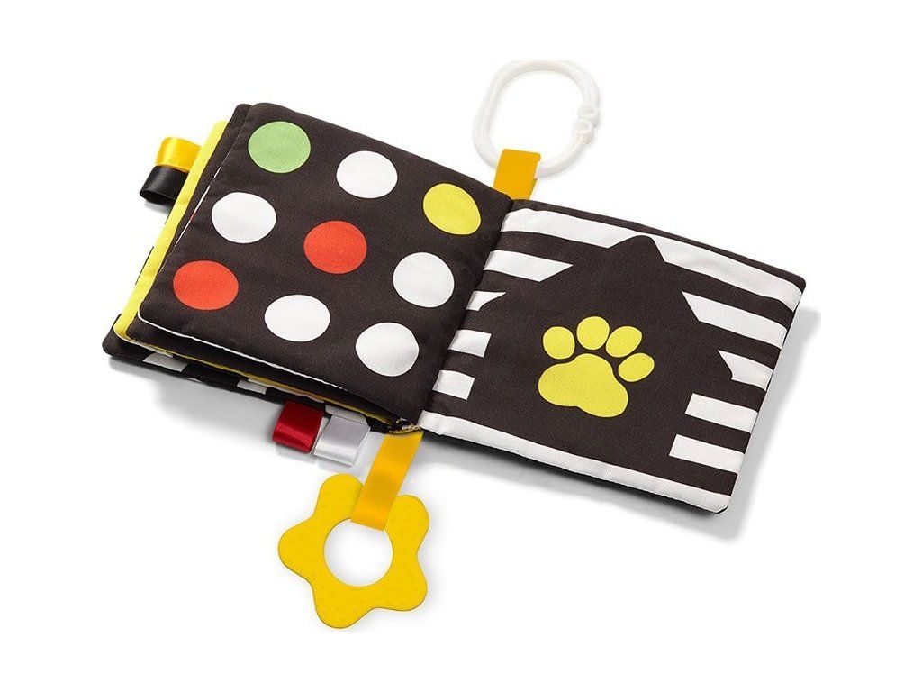 Knížka umožňuje získat nové dovednosti, od procvičování úchopu, přes stimulaci dásní pomocí kousátek s výstupky, až po naučení počítání a poznávání různých povrchů a tvarů. Má jasné, kontrastní barvy, které rozvíjejí zrak, představivost a schopnost soustředit se.