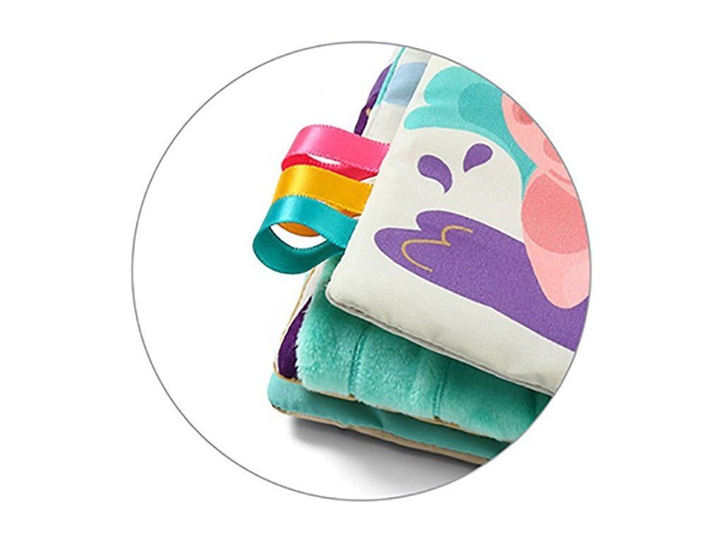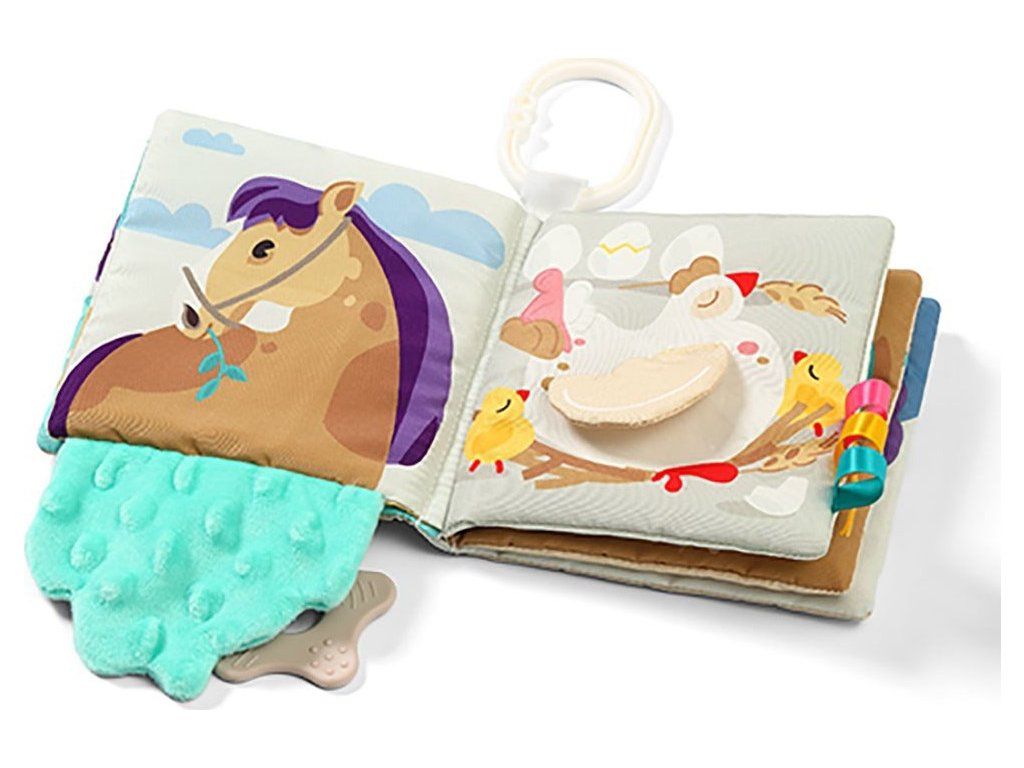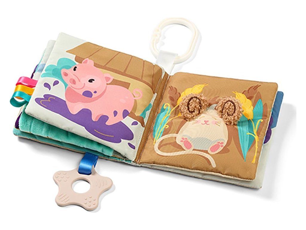 Knížka umožňuje získat nové dovednosti, od procvičování úchopu, přes stimulaci dásní pomocí kousátek s výstupky, až po naučení počítání a poznávání různých povrchů a tvarů. Má jasné, kontrastní barvy, které rozvíjejí zrak, představivost a schopnost soustředit se.