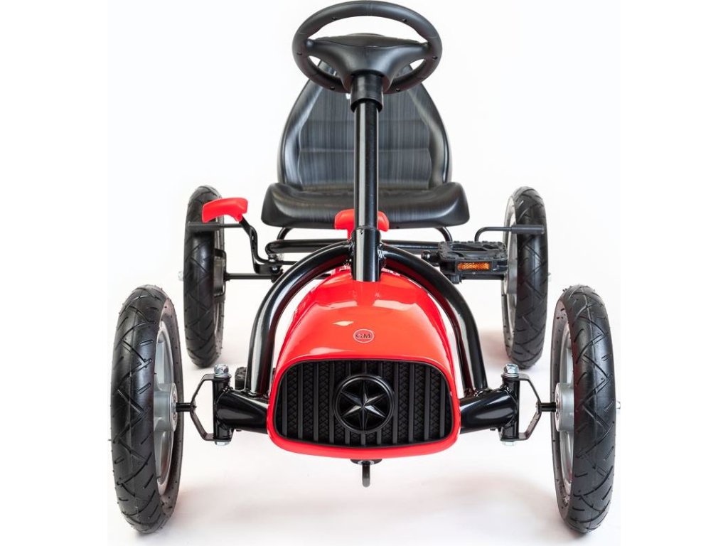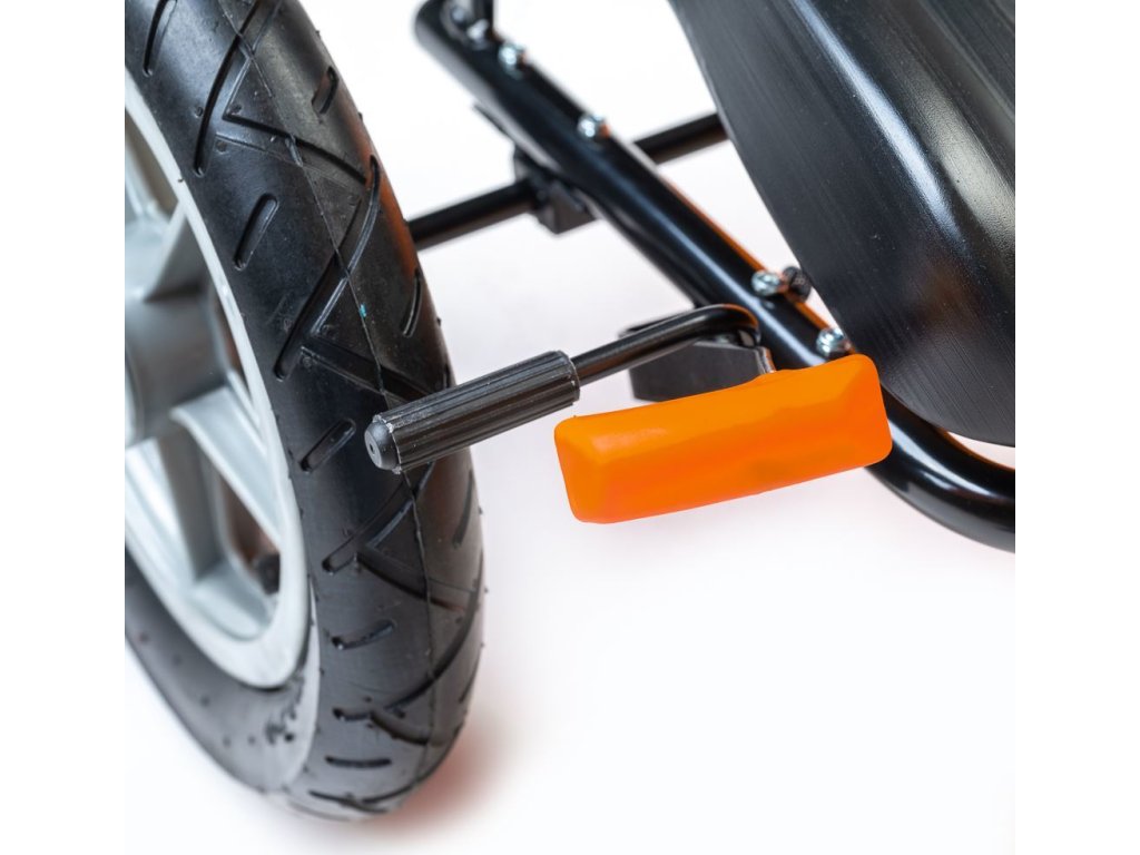 Velké nafukovací pneumatiky zajistí komfort a pohodlí při jízdě na jakémkoli povrchu. Motokára má zabudovaný řetězový pohon s možností odpojení pohonu - funkce volnoběžky a ruční brzdu na zadní nápravě.