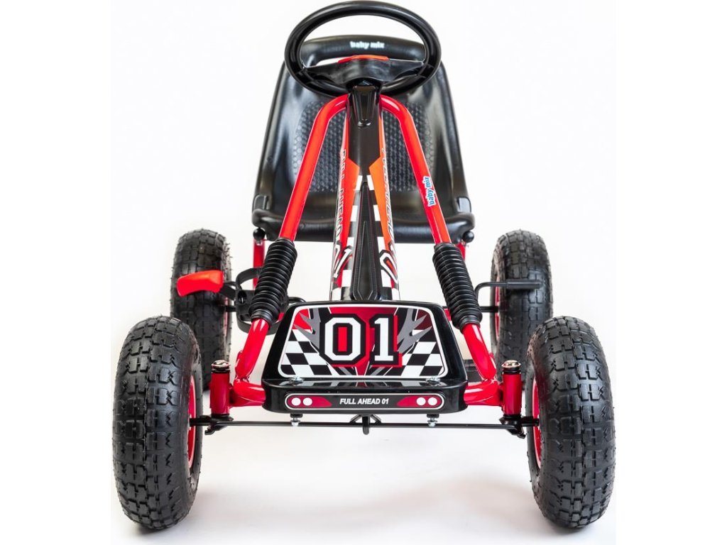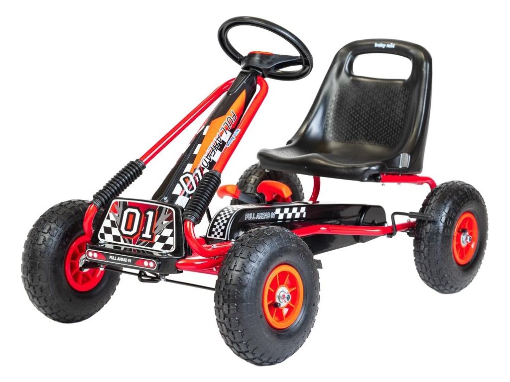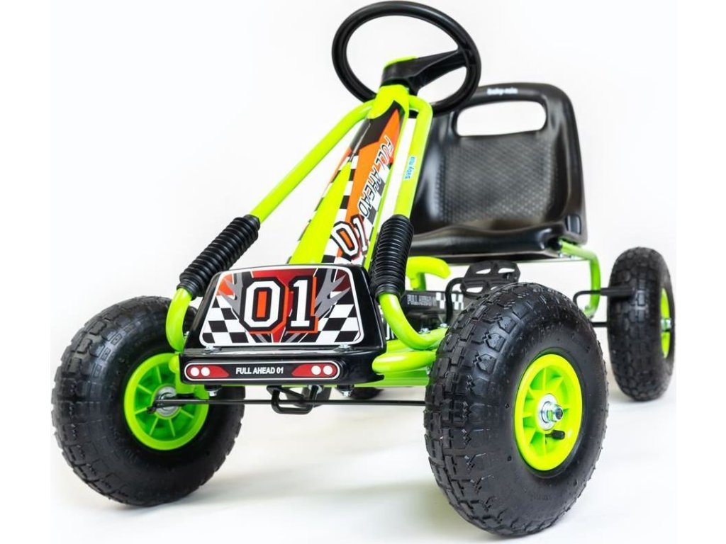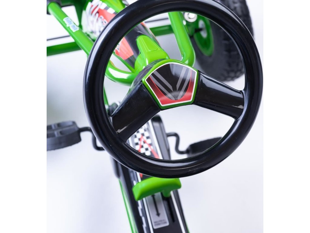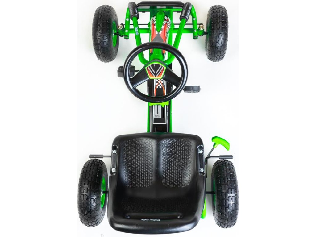 Velké nafukovací pneumatiky zajistí komfort a pohodlí při jízdě na jakémkoli povrchu. Motokára má zabudovaný řetězový pohon s možností odpojení pohonu - funkce volnoběžky a ruční brzdu na zadní nápravě.
