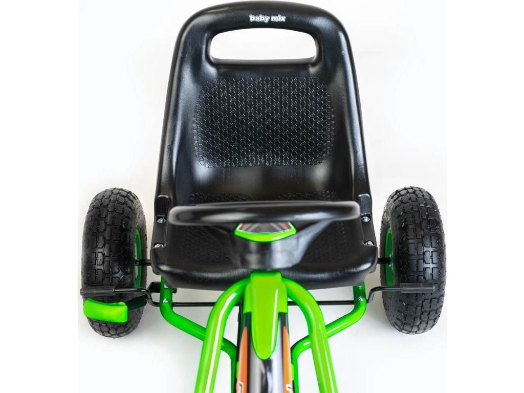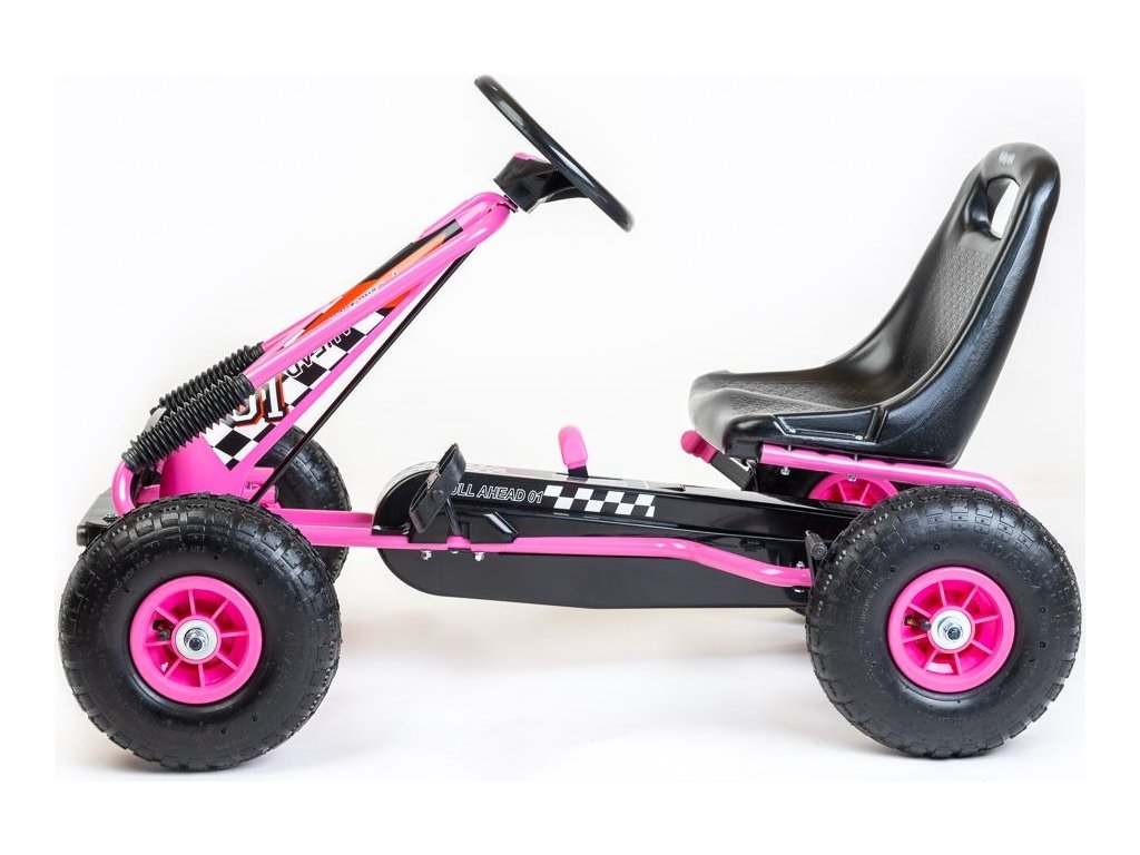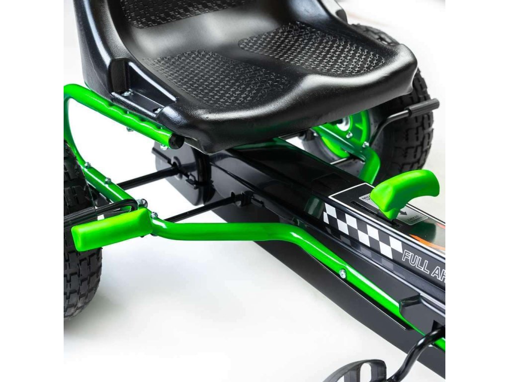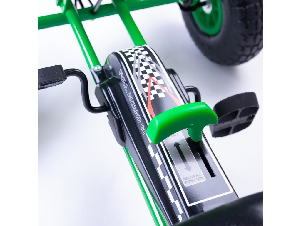 Velké nafukovací pneumatiky zajistí komfort a pohodlí při jízdě na jakémkoli povrchu. Motokára má zabudovaný řetězový pohon s možností odpojení pohonu - funkce volnoběžky a ruční brzdu na zadní nápravě.