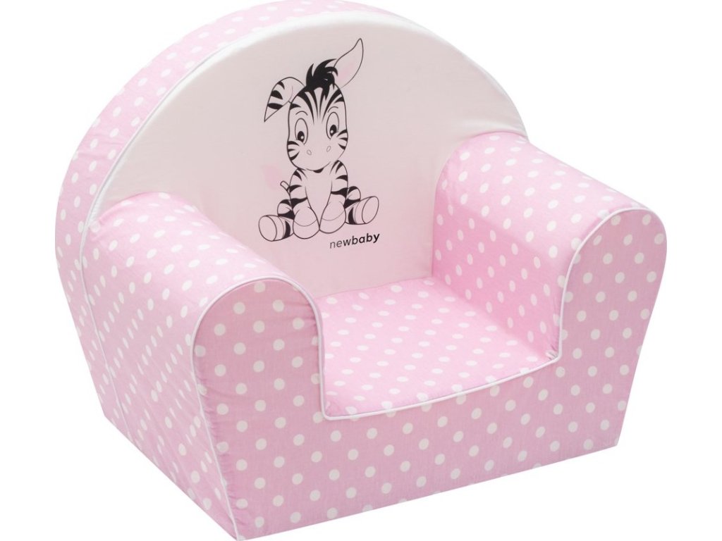 Dětské křesílko New Baby Zebra je skvělým a velmi oblíbeným doplňkem do dětského pokojíčku. Toto křeslo pro nejmenší děti je vyrobeno z měkkého materiálu a má snímatelný bavlněný potah, který lze prát. Potah má velmi příjemné barvy s potiskem puntíků a zdobí ho obrázek roztomilé zebry. Rozměry: vxš: cca 42x53 cm, výška opěradla cca 29 cm, šířka sedadla cca 25 cm. Složení: potah 100% bavlna.