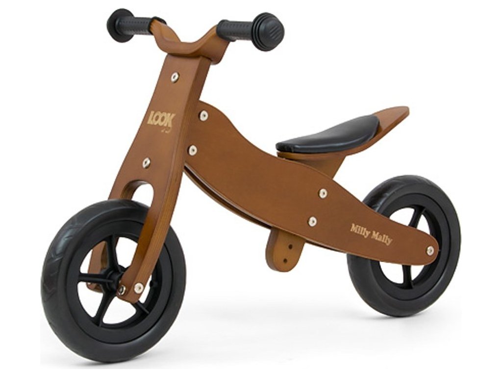 Dětské multifunkční dřevěné odrážedlo Milly Mally Look 2v1 je ideálním řešením pro děti, které se právě začínají učí jezdit na kole a přitom ještě nejsou schopné udržet rovnováhu na dvou kolech. Hlavní výhodou odrážedla Look je, že tříkolku snadno a rychle předěláte na odrážedlo na dvou kolech. Je vyrobeno z pevného dřeva a ozdobeno krásnými veselými barvami a obrázky. Pěnová kola zajistí pohodlí během jízdy a neunaví vašeho malého závodníka. Dostatečný rozvor kol poskytuje extrémní stabilitu, bezpečnost a pohodlí doma i venku. Měkké a neklouzavé rukojeti zajistí pevné držení řídítek. Nastavitelná výška sedadla umožní přizpůsobit odrážedlo potřebám dítěte. Krásné multifunkčí odrážedlo padne do oka jak holčičkám tak chlapečkům a skvěle je připraví pro jízdu na kole bez nutnosti montáže bočních koleček.