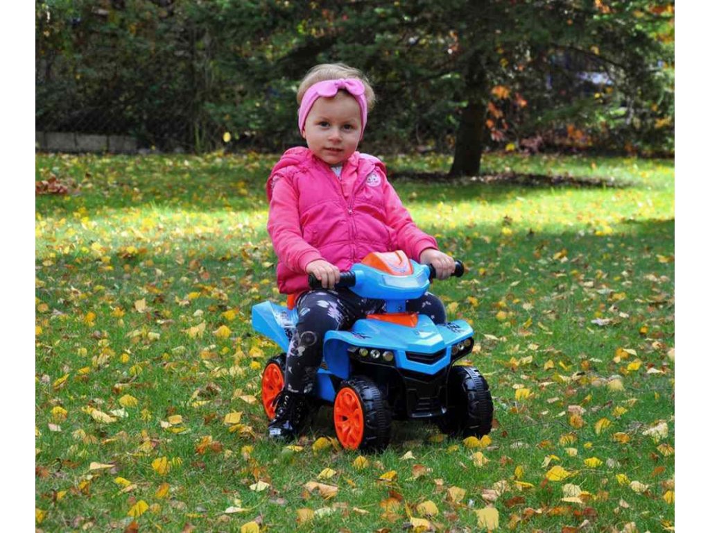 Jezdítko je vybaveno mnoha doplňky a pod sedadlem je úložný prostor, kam si váš malý řidič může uložit své nejcennější poklady a vzít si je všude s sebou. Interaktivní volant s hudebním panelem dále povzbuzuje vaše děťátko ke hře a zpříjemňuje hraní pomocí tlačítek, která přehrávají různé melodie. Řízení a tlačení má pozitivní vliv na motorickou koordinaci, stimuluje a podporuje hmat a zvyšuje přesnost pohybů rukou, zatímco zvukové signály a barevná světla stimulují sluch a zrak dítěte.