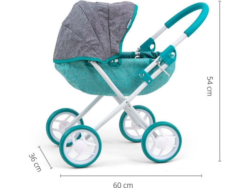 Dori je hluboký kočárek určený pro panenky do délky 40 cm. V korbičce je matrace, která je dokonale sladěná s kočárkem. Navíc je vybaven odnímatelnou a skládací stříškou.