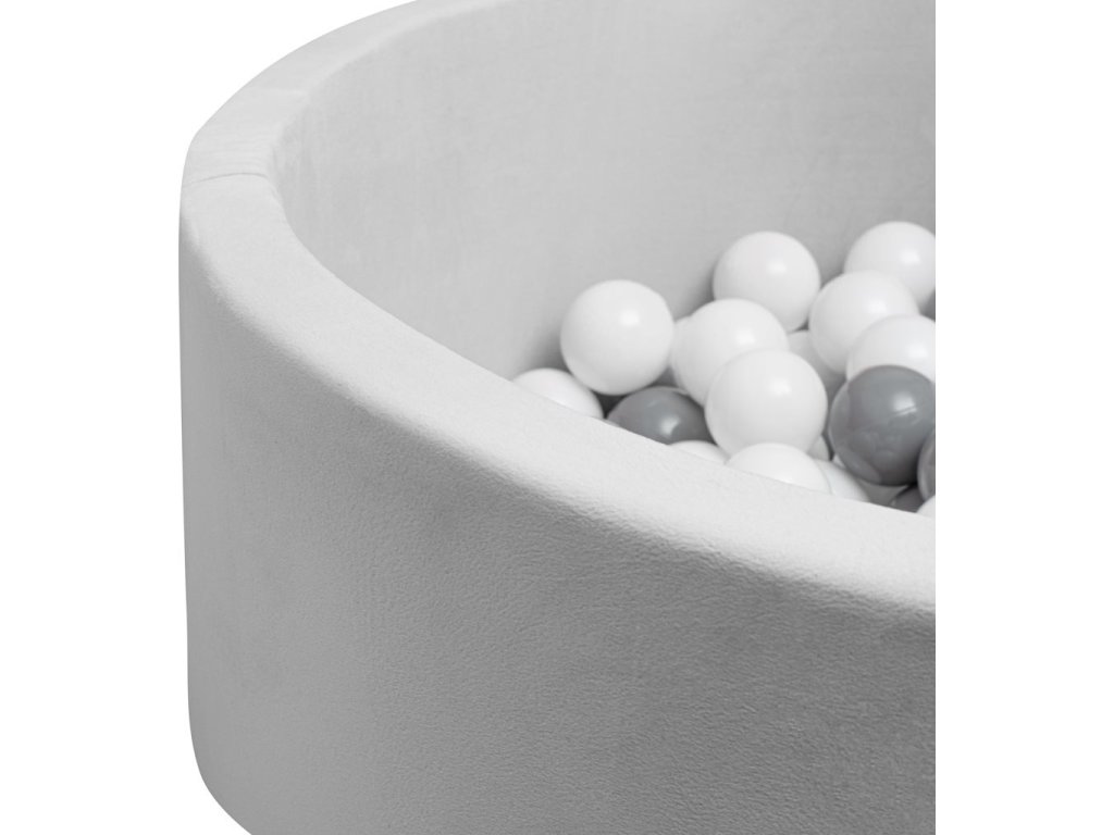 Dětský suchý bazén s míčky New Baby. Bazének plný kuliček je skvělá zábava, kterou si oblíbí každé dítě a poskytne mu spoustu zábavy a radosti. Zároveň podpoří tak smyslový vývoj dítěte a vzdělává. Pružná pěna bazénu zajistí bezpečnost a pohodlí. Hodí se do moderního i klasického interiéru, do dětského pokoje a obývacího pokoje. Součástí bazénku je balení s míčky. V jednom balení je 150 ks plastových certifikovaných míčků v bílé a šedé barvě. Splňují bezpečnostní normy pro děti, jako je EN-74 nebo CPSC.