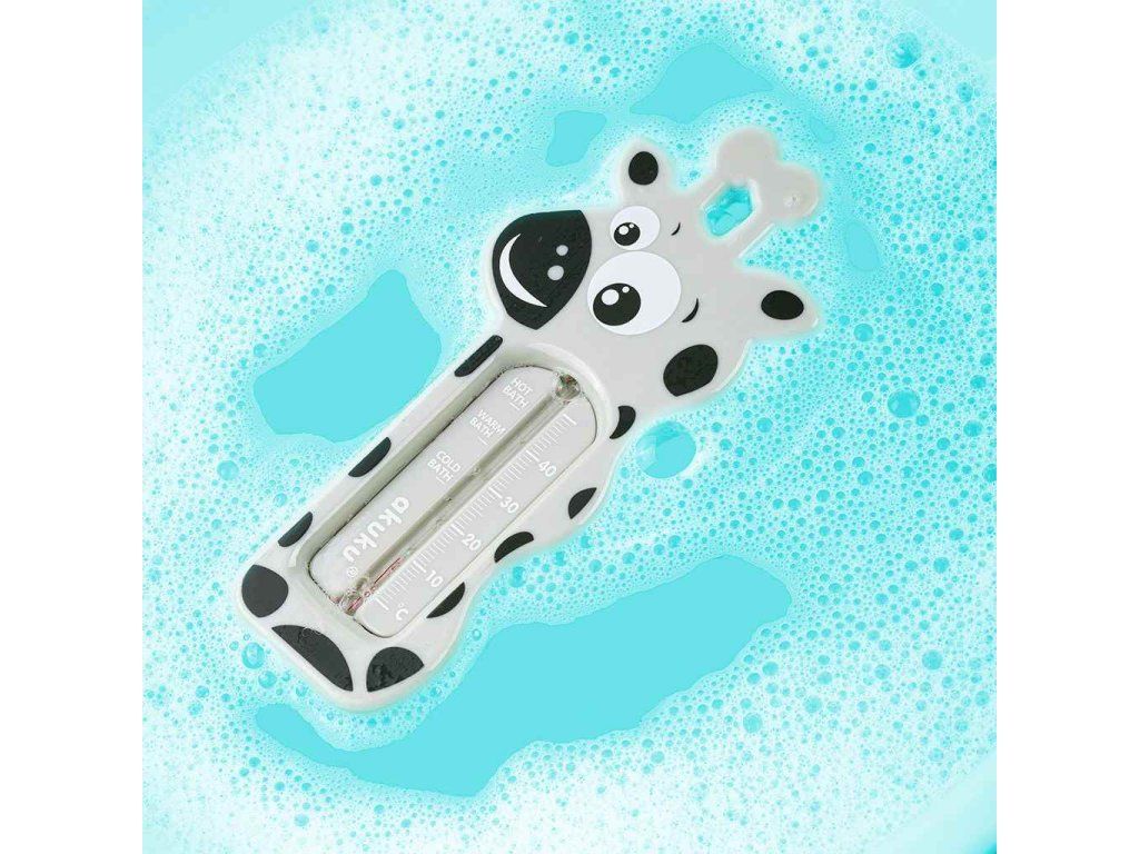 Plovoucí dětský teploměr do vaničky Akuku. Díky velké stupnici lze zjistit hodnotu teploty. Neobsahuje rtuť.