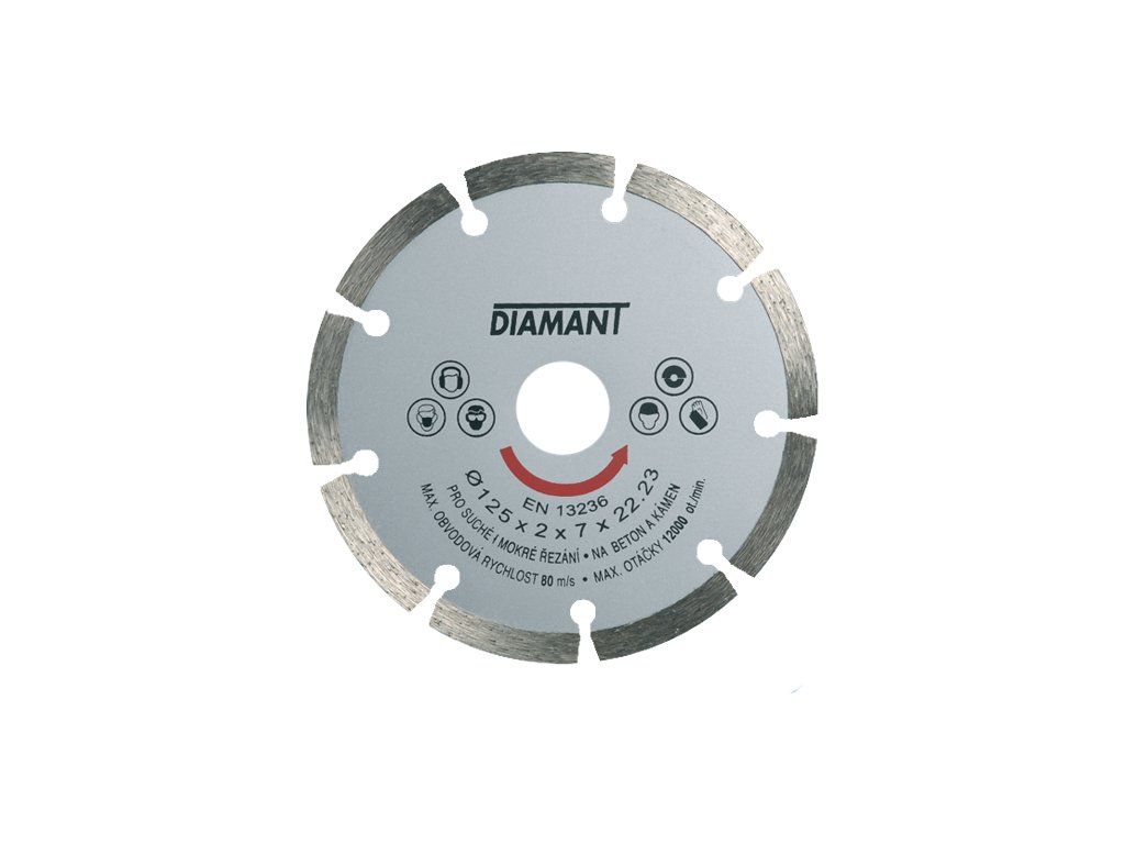 Pro suché a mokré řezání betonu, kamene, asfaltu a cihel. Výborný řezný výkon v poměru s cenou. Ostří je dělené. Jedná se o dělicí kotouč pro ruční nářadí.