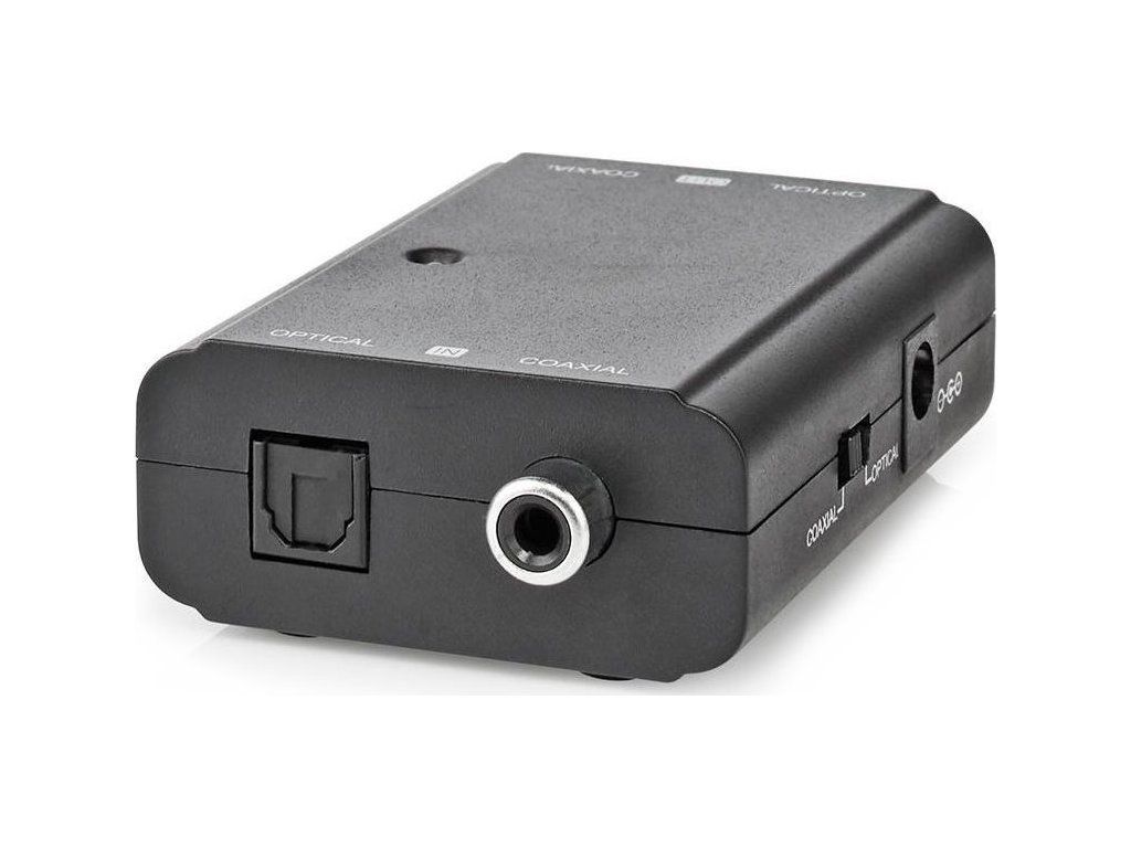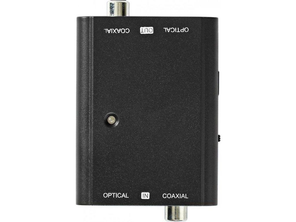 Konektory: 2 x Toslink (vstup a výstup), 2 x RCA (vstup a výstup)