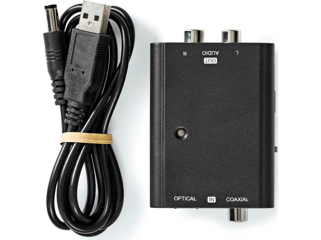 Nedis ACON2509BKPřipojte nejnovější digitální obrazovky s optickými výstupy k zesilovačům s analogovými připojeními. Tento digitální audio na stereo RCA převodník převádí digitální Toslink nebo RCA audio signál na analogový stereo audio signál. Dodává se s nabíjecím kabelem DC-USB (adaptér není součástí balení).