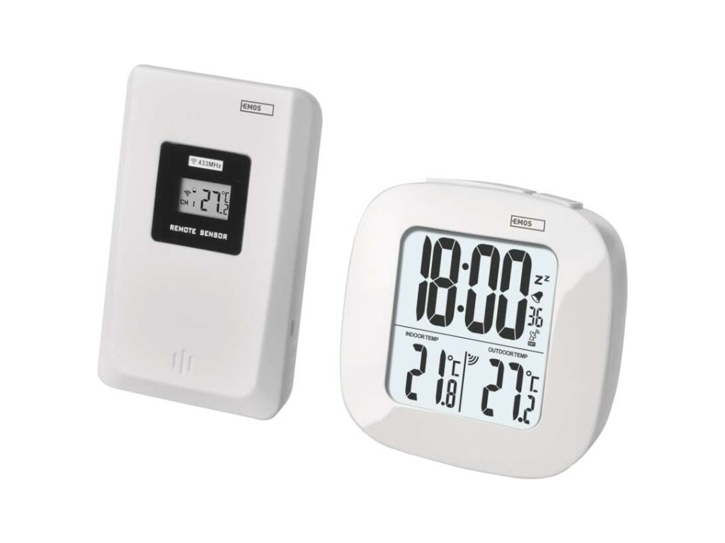 Digitální teploměr, bezdrátové čidlo, budík, datum E0127