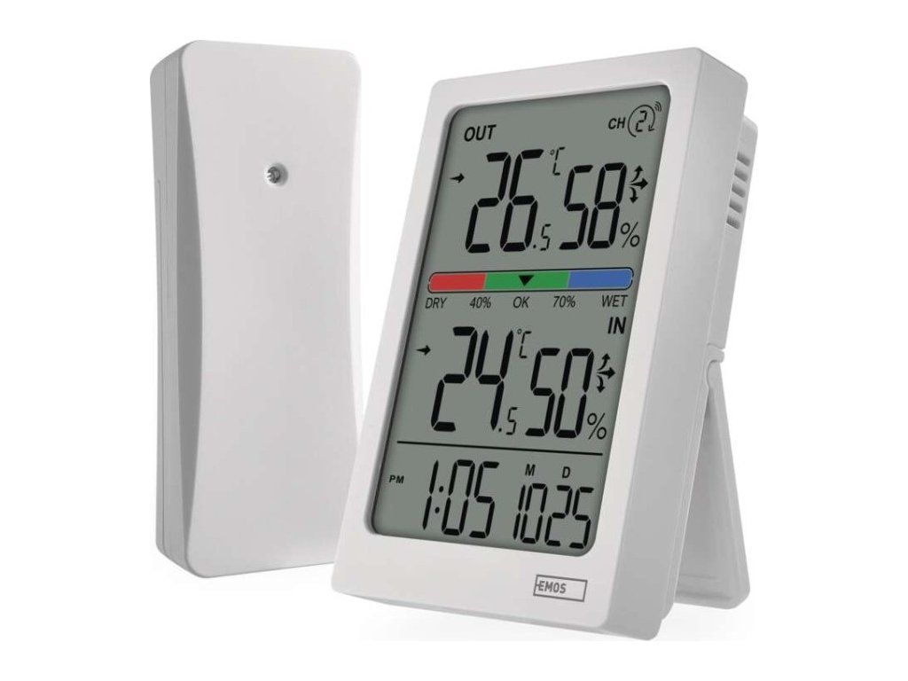 Digitální teploměr s vlhkoměrem, bezdrátové čidlo, budík, datum E0558W