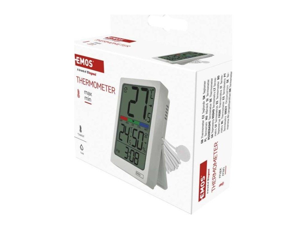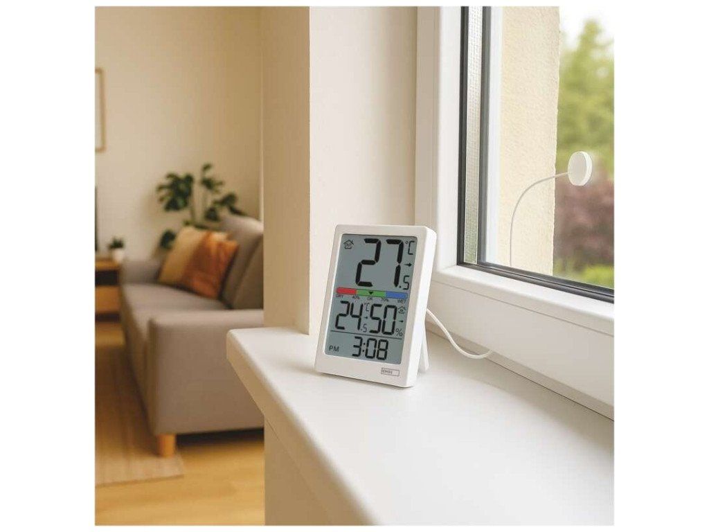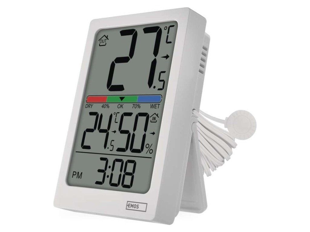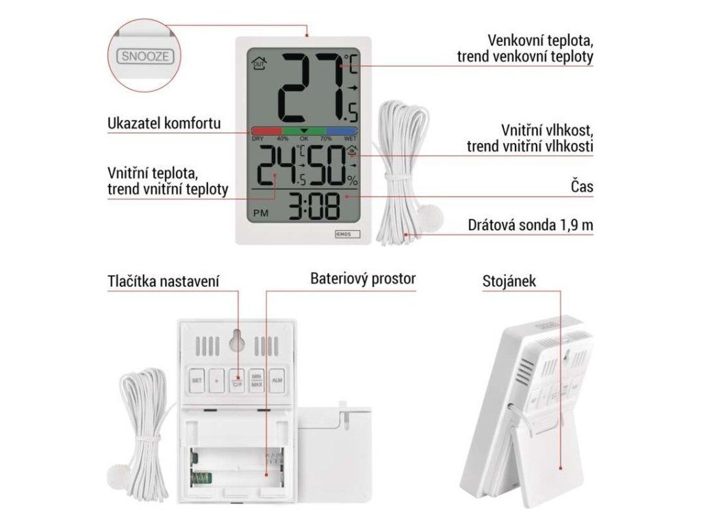 Digitální teploměr s vlhkoměrem, drátové čidlo, budík E0558P