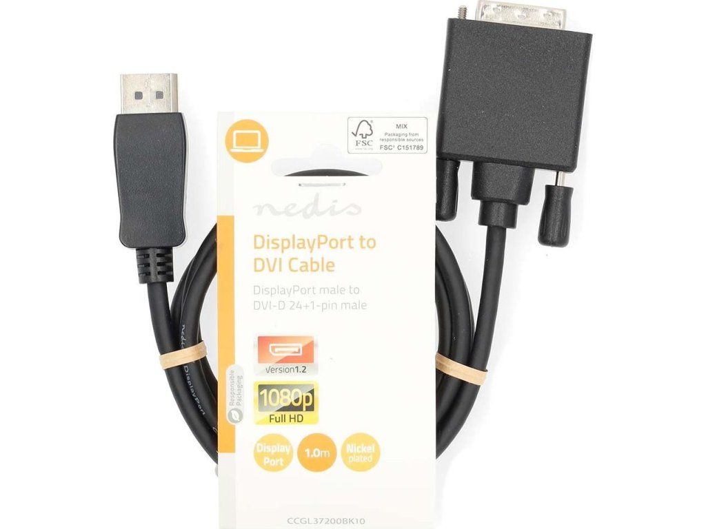 Nedis DisplayPort - DVI-D 2 mPomocí tohoto kabelu lze převést signál DisplayPort na signál DVI. Kabel je ideální pro připojení zařízení s konektorem DisplayPort k počítači.