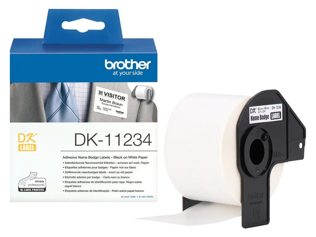 Štítky na oděv Brother DK-11234 jsou vhodné pro všechny vaše potřeby při identifikaci návštěvníků a hostů. Celkem 260 štítků na roli pro identifikační jmenovky návštěvníků, výstavy nebo jiné obchodní či pohostinské akce ve standardní velikosti 60 mm x 86 mm.